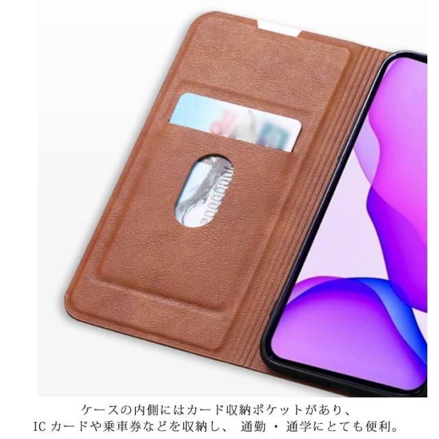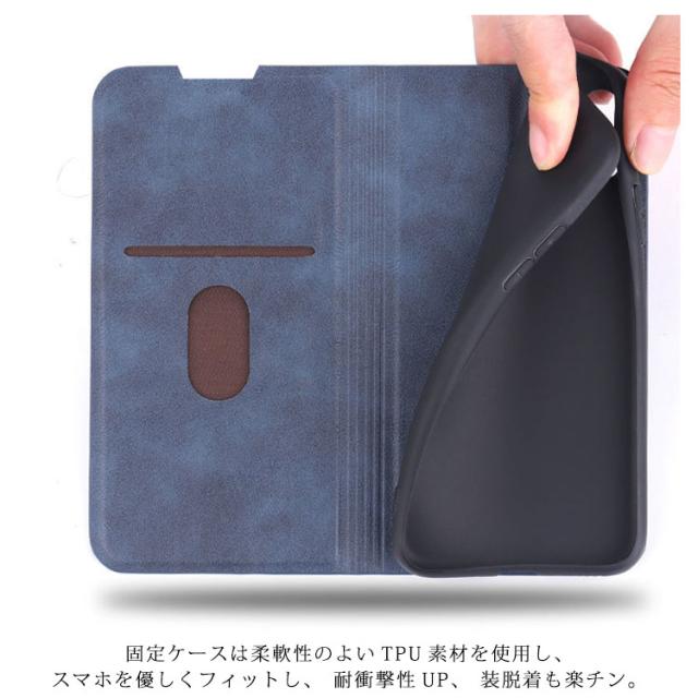 | シンプルでおしゃれな手帳型スマホケース。 ビジネス、カジュアルなどどんなシーンにも対応し、男女問わずご利用いただけるスタイリッシュなデザイン。 固定ケースは柔軟性のよいTPU素材を使用し、スマホを優しくフィットし、耐衝撃性UP、装脱着も楽チン。 上質PUレザーで360度全面保護!キズやホコリの侵入を防ぎ、放熱性にも優れています。 スタンド機能付きで、横置きにして、お好きな角度で動画鑑賞、読書などを楽しめます。 ケースの内側にはカード収納ポケットがあり、ICカードや乗車券などを収納し、通勤・通学にとても便利。 ケースを装着したまま、充電、本体の操作などスームズにできます。 | |