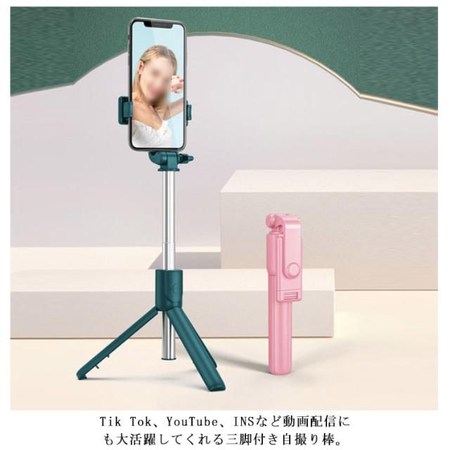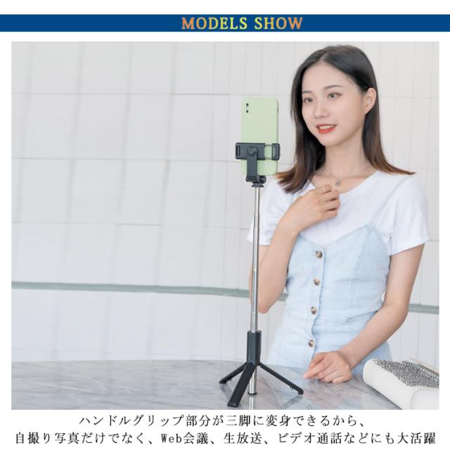 | 軽くて持ち運び便利なミニワイヤレスセルカ棒。 ハンドルグリップ部分が三脚に変身できるから、自撮り写真だけでなく、Web会議、生放送、ビデオ通話などにも大活躍。 360度回転できるから、横も縦も斜めも好きな角度で撮影可能。 手のひらさのサイズで、超軽量設計で持ち運びラクラク。 伸縮できるから、好きな長さに調整し撮影するといいです。 Bluetoothリモコンは本体から取り外せるから、遠距離でコントロールできるから、集合写真などに最適。 Tik Tok、YouTube、INSなど動画配信にも大活躍してくれる三脚付き自撮り棒。 | |