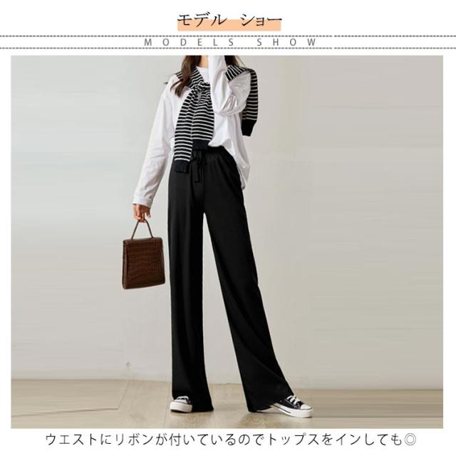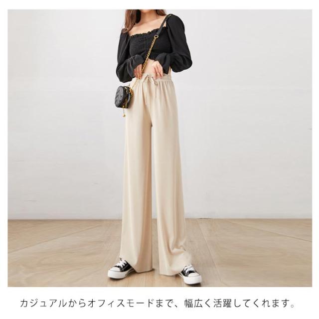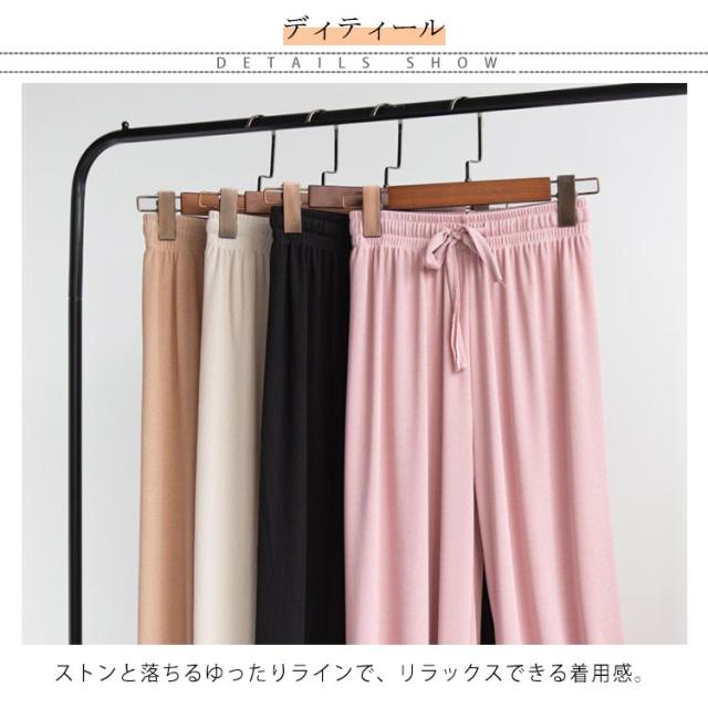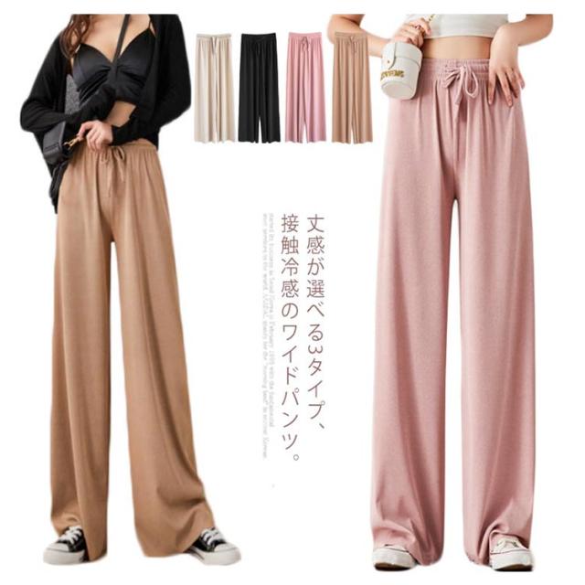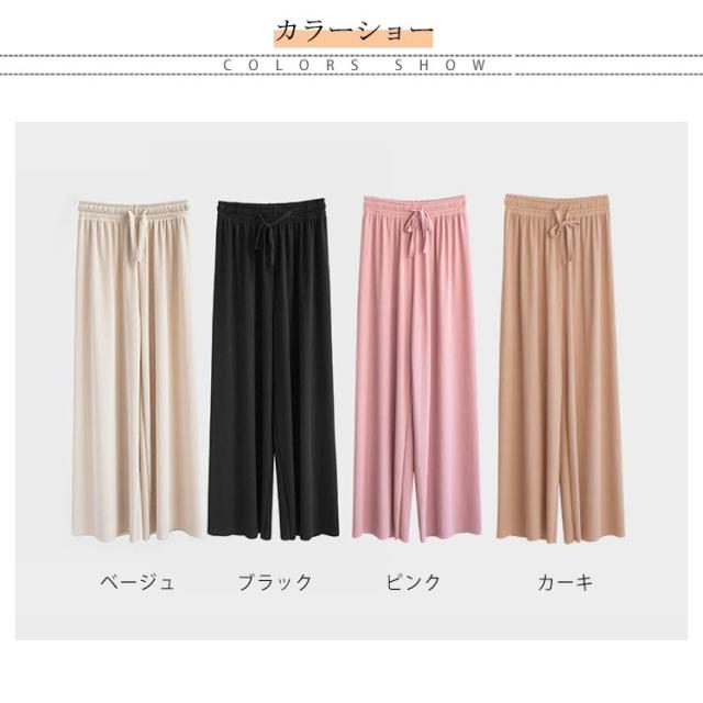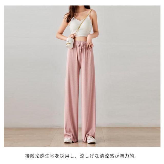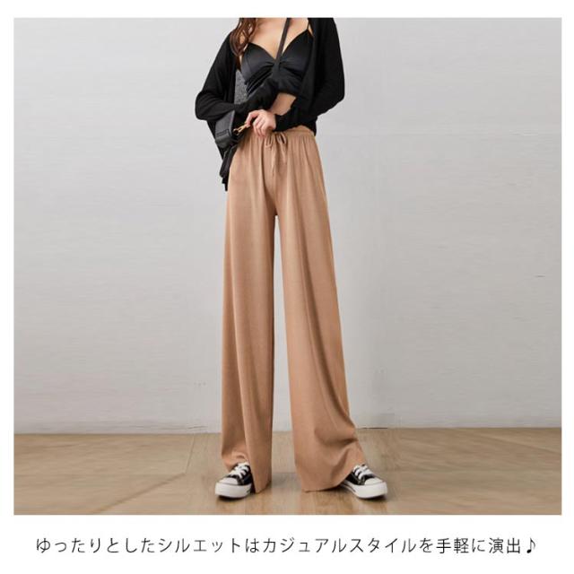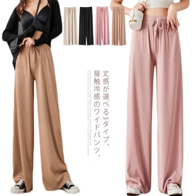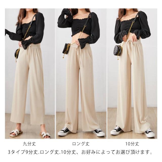 送料無料 選べる3種の丈 ワイドパンツ レディース ガウチョパンツ 接触冷感 キレイめ 九分丈 マキシ丈 10分丈 ロングパンツ ゆったり ルームウェア ウエスト紐付き ポケット付き 体型カバー 大きいサイズ ボトムス 薄手 春 春夏