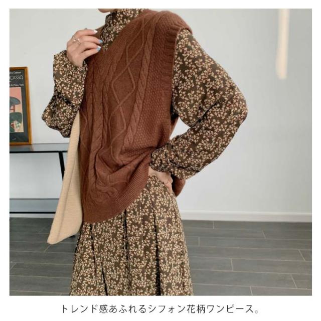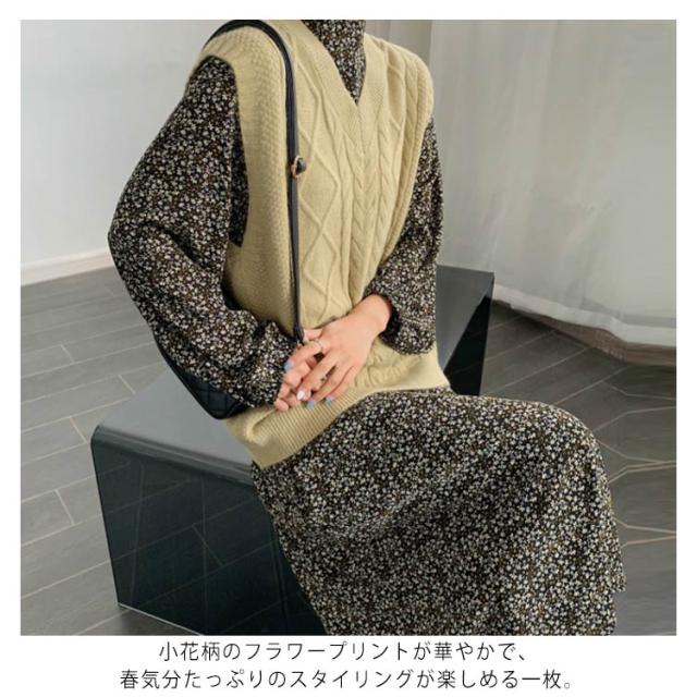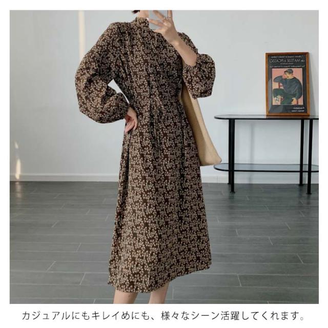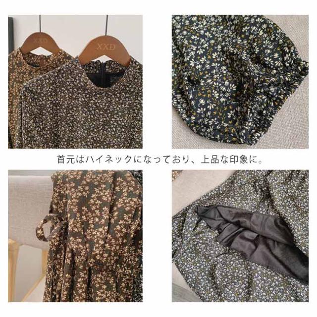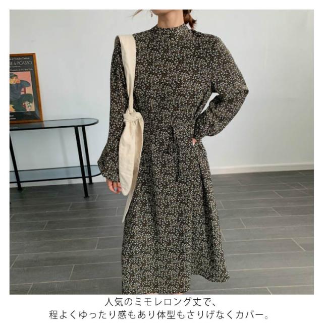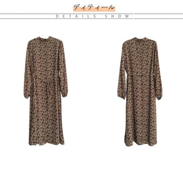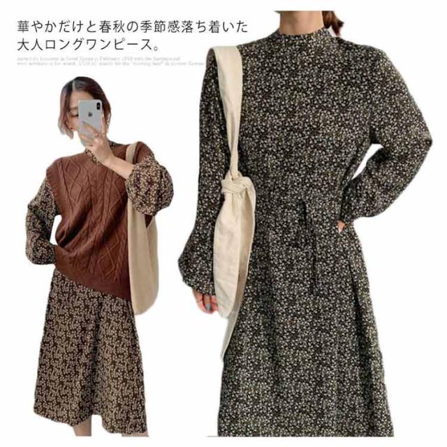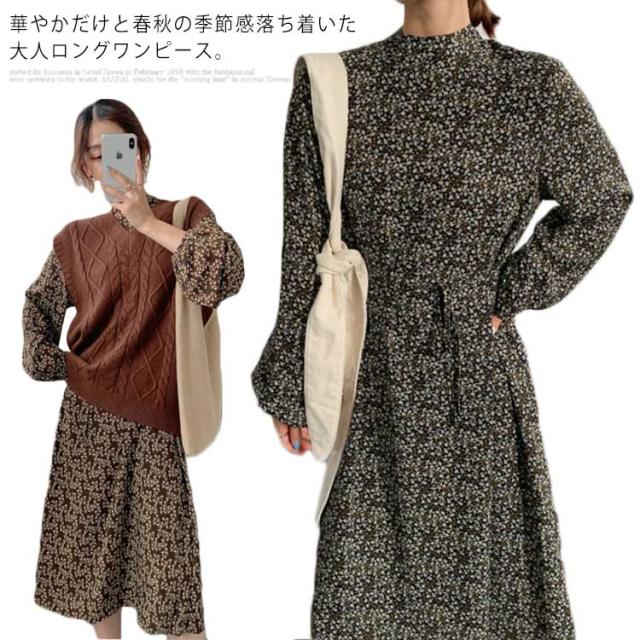 送料無料 シフォンワンピース レディース ワンピース ロングワンピース ミモレワンピース 長袖 小花柄 大人 裏地付き 透け感 薄手 ロング丈 お洒落 リゾート キレイめ こなれ感 フェミニン ゆったり カジュアル 春新作