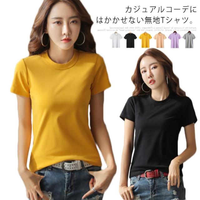 送料無料 Tシャツ レディース 半袖Tシャツ カットソー ラウンドネック 無地 ゆるTシャツ トップス シンプル コットン 綿 薄手 ゆったり プルオーバー きれいめ カジュアル カラバリ豊富 春新作