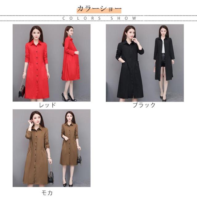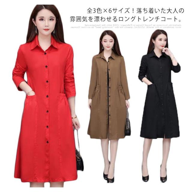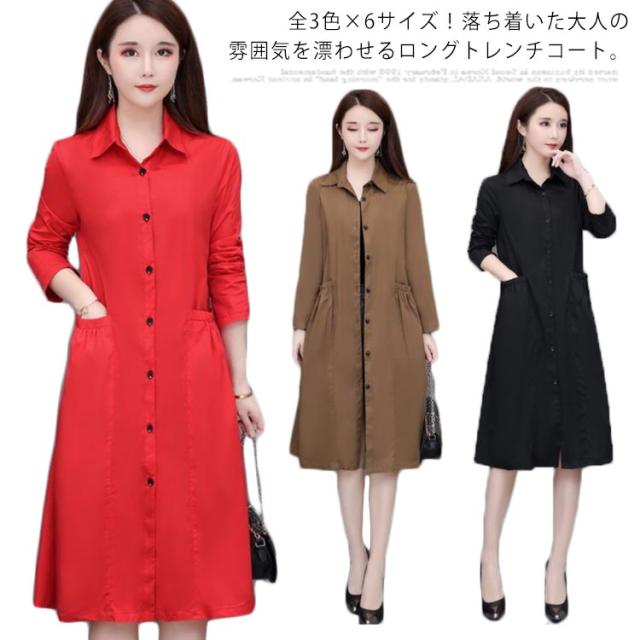 全3色×6サイズ!春物 ロングコート 春 アウター コート ロング丈 トレンチコート トレンチ カジュアルコート 薄手 aライン 大きサイズ シンプル 無地 ステンカラー