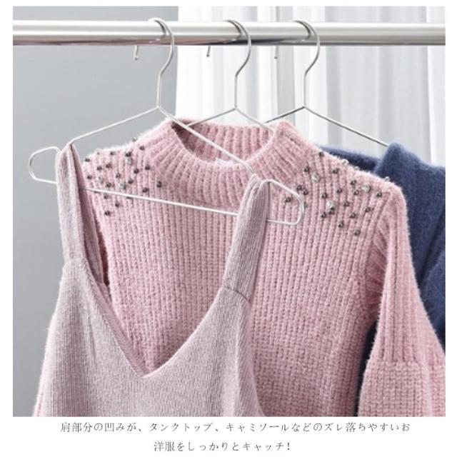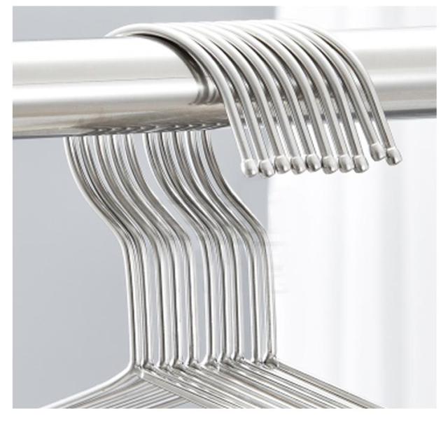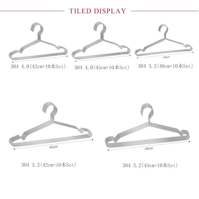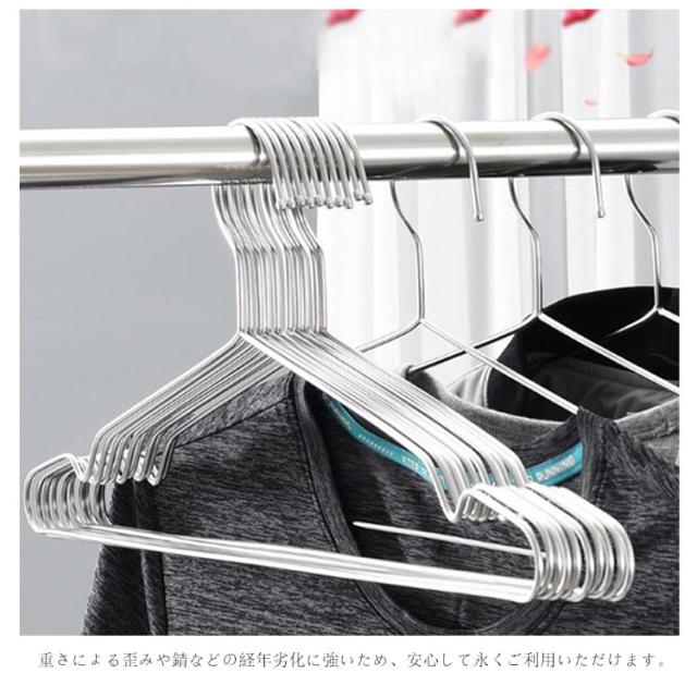 | 10本セット!シンプルでスタイリッシュなステンレスハンガー。 重さによる歪みや錆などの経年劣化に強いため、安心して永くご利用いただけます。 肩部分の凹みが、タンクトップ、キャミソールなどのズレ落ちやすいお洋服をしっかりとキャッチ! 先端に滑り止め加工されているので滑りにくく、洋服を傷つける心配もなし。 溶接部分もしっかり加工されているので、頑丈で壊れにくい。 | |