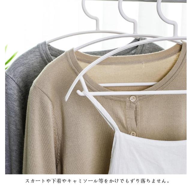 | 10本セット!選べる2タイプ!お洒落なハンガー。 上質のPP素材で非常に丈夫で耐久性がある。 肩の部分が丸く作れているので、ハンガーの跡が付きにくく、型崩れにくい。 バーがついているのでズボンをかけることも可能です。 スカートや下着やキャミソール等をかけでもずり落ちません。 収納用ハンガーとして収納力抜群です。 | |