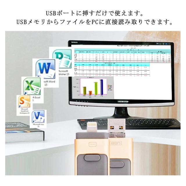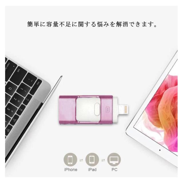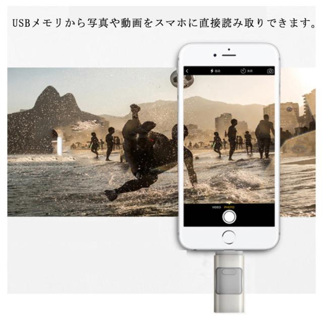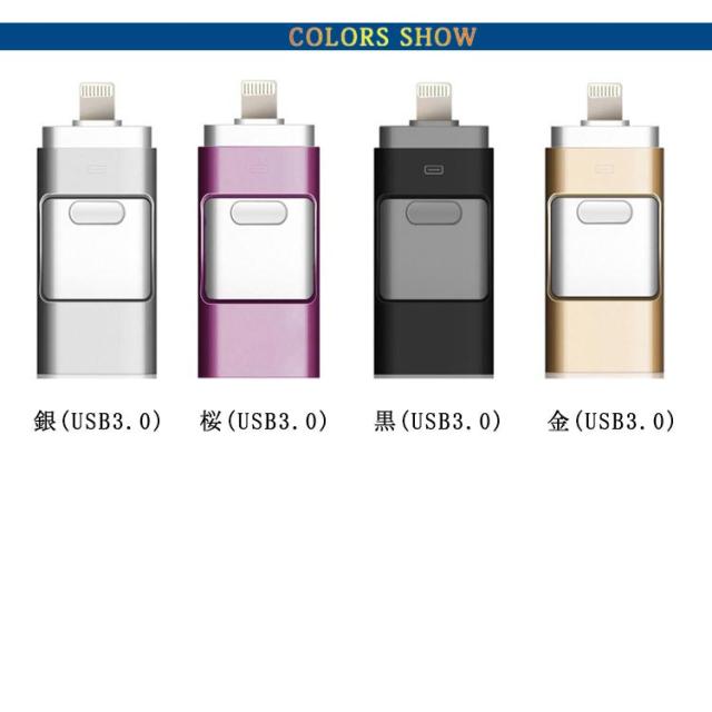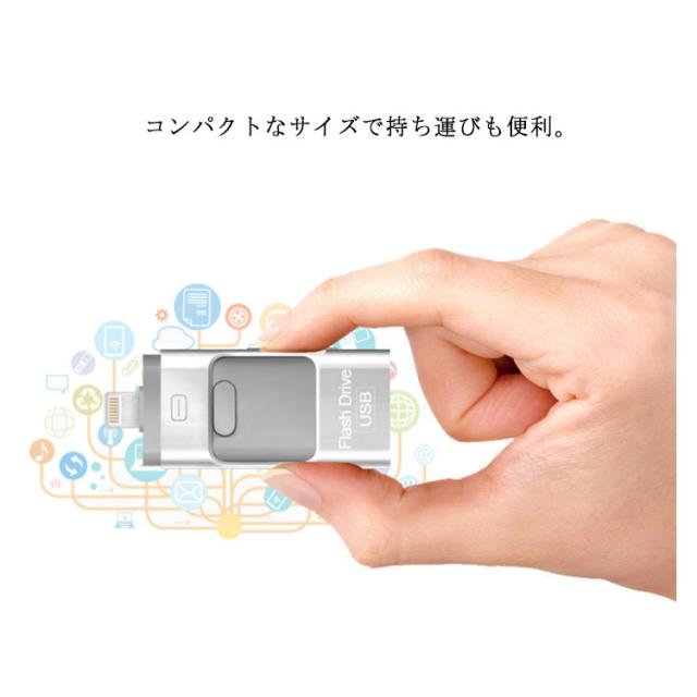 | 【商品名】USBメモリ 【サイズ】52*22*8mm 【容量】32GB 【インターフェース】USB3.0 【素材】 合金 そのほか 【特徴】スマホの容量不足をラクラク解消!!Lightning、microUSB、USBコネクタ搭載で、iPhone/iPad/Android/PC/MacBook向けのフラッシュドライブです。 多くのデータ形式に対応していますのでビジネスデータや音楽、映像、WORD、PDF、EXCELなどのオフィスファイルの保存にご活用ください。 ※USBメモリー本体のみです。 | |