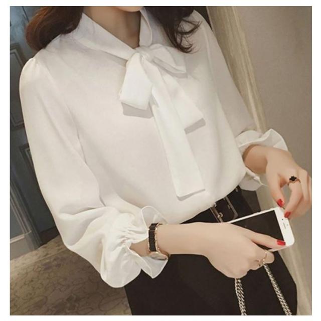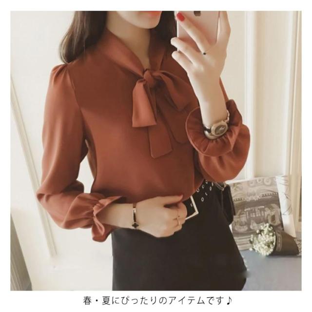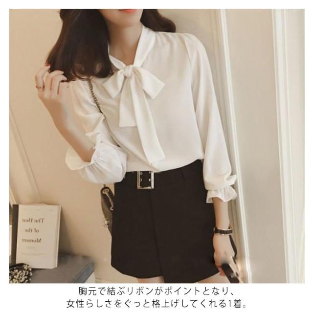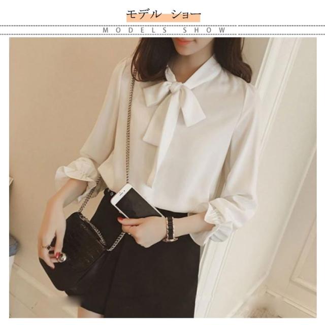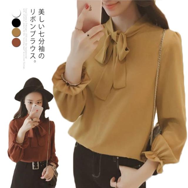 送料無料 ブラウス レディース トップス 胸元リボンブラウス フォーマルトップス シャツ エレガントシャツ シフォンシャツ 七分袖 シンプル ゆったり リボン フェミニン シフォン 上品 オフィス 通勤 OL 春 入園入学 卒業式 結婚式 大きいサイズ