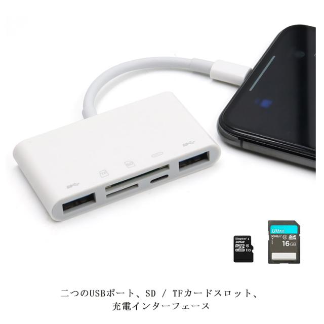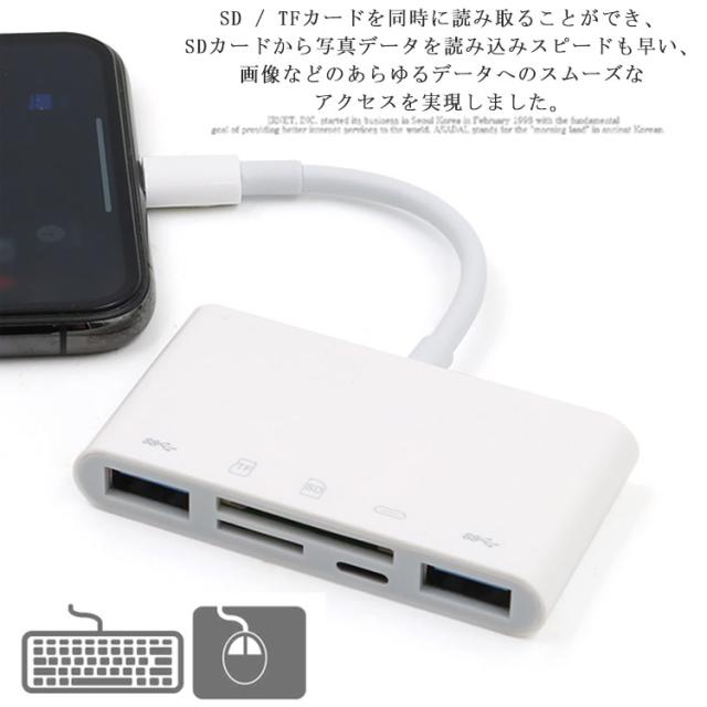 変換アダプタ USBアダプタ 超軽量 TF /SDカード 充電対応 多機能Type-Cハブ iphone/ipad マウス キーボード