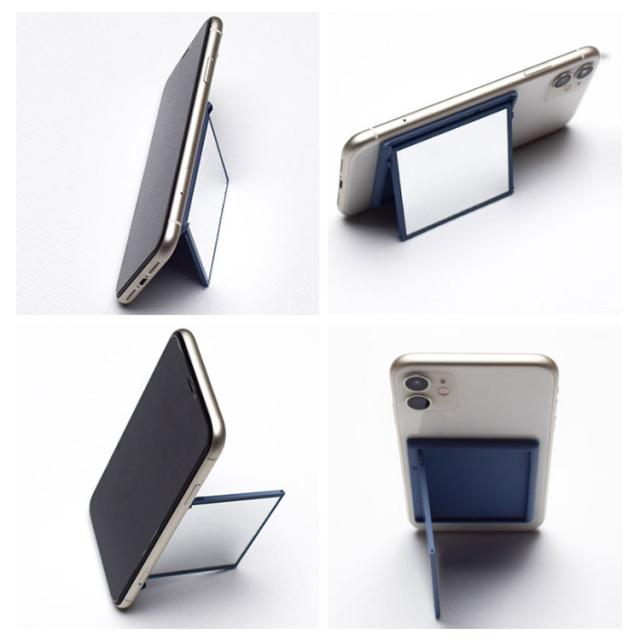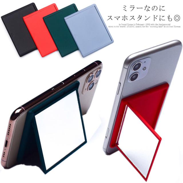 送料無料 スマホスタンド ミラースタンド 鏡 スマホホルダー 卓上スタンド スライド ミラー コンパクトミラー 薄型 スマホリング 大きめ鏡 メイク 化粧直し