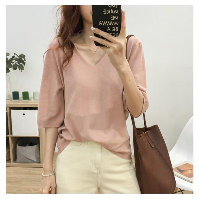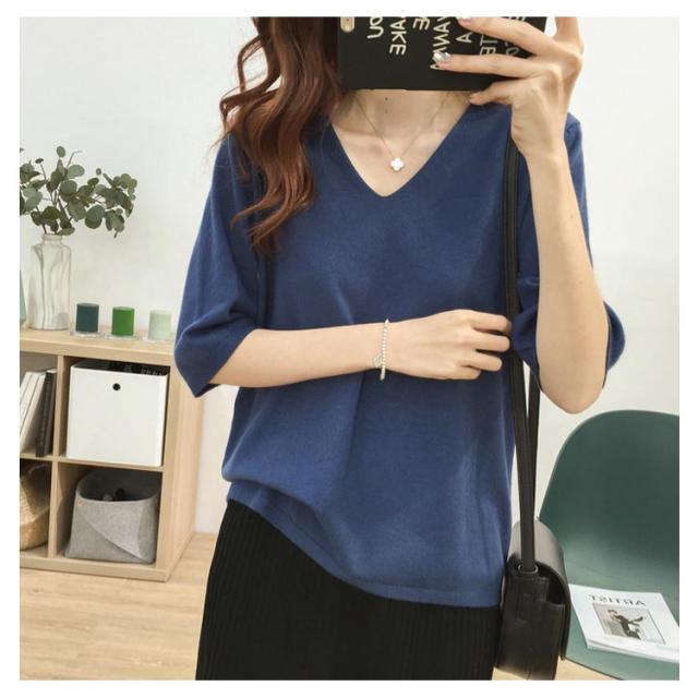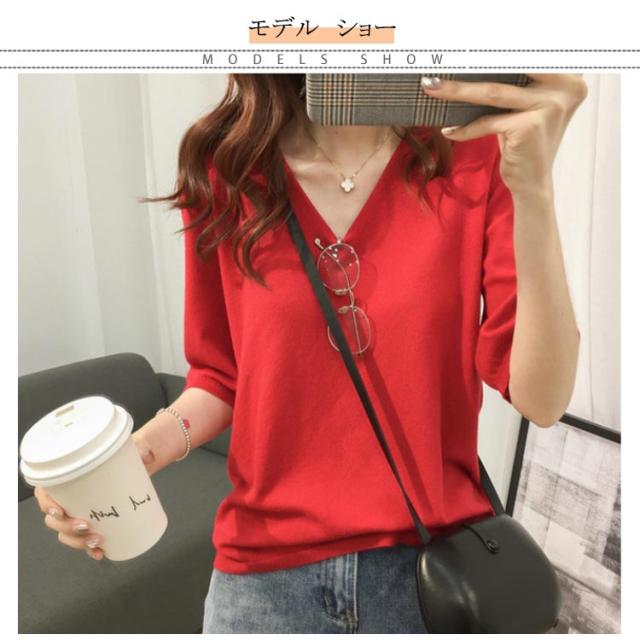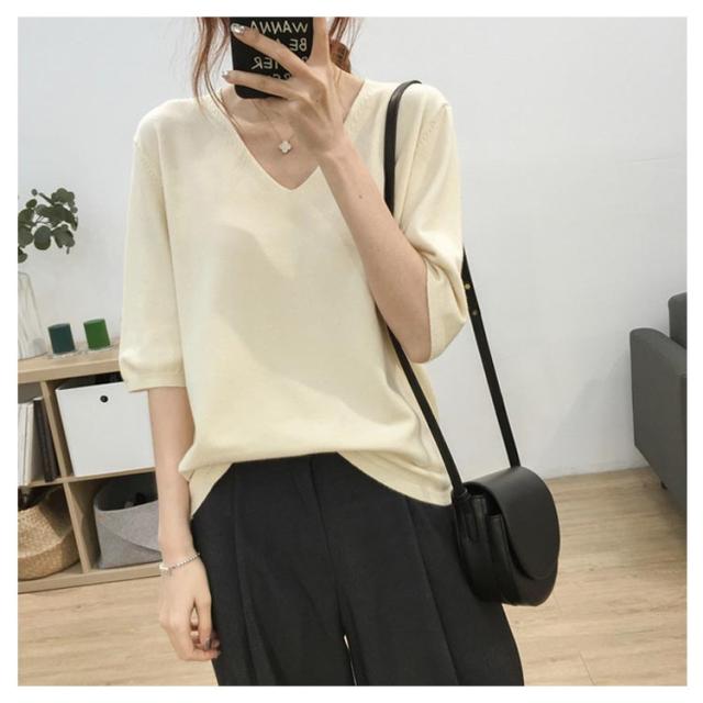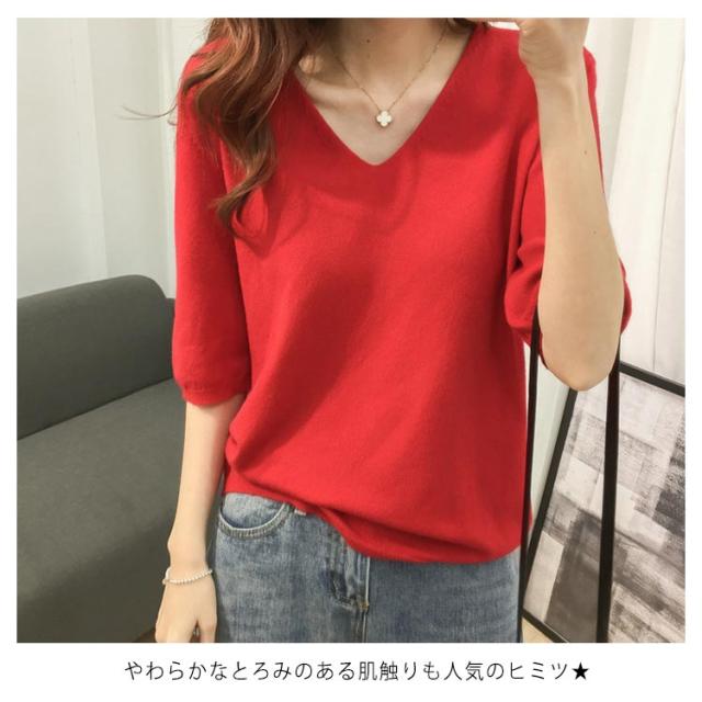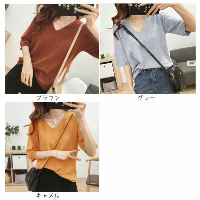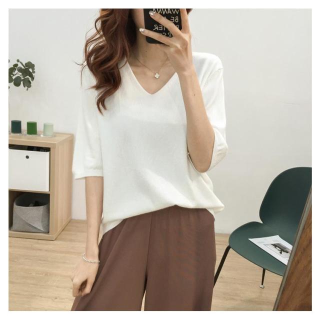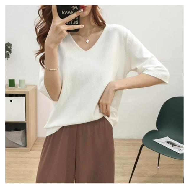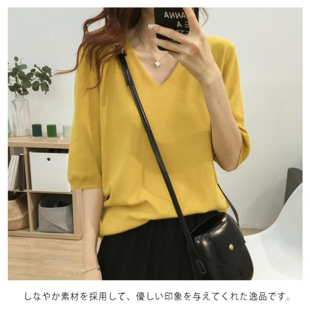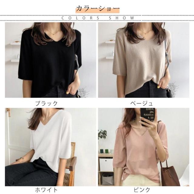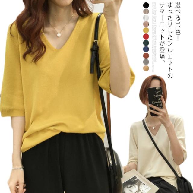 送料無料 ニットトップス レディース ニット Tシャツ ニット Vネック 半袖Tシャツ Tシャツ ニット トップス 半袖 サマーニット シンプル プルオーバー ゆったり 無地 春夏