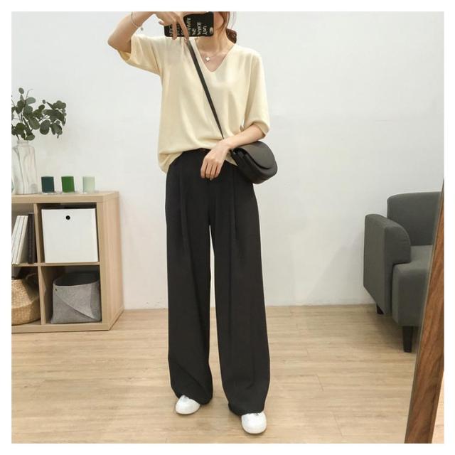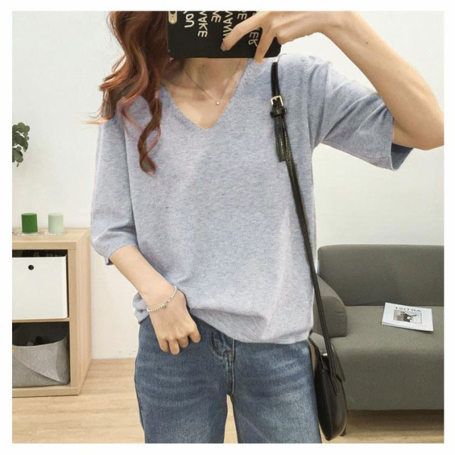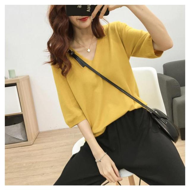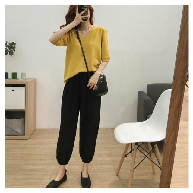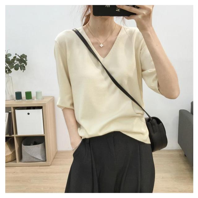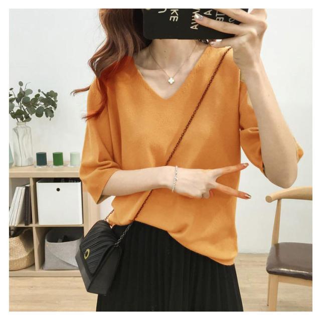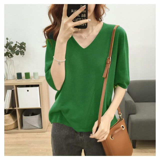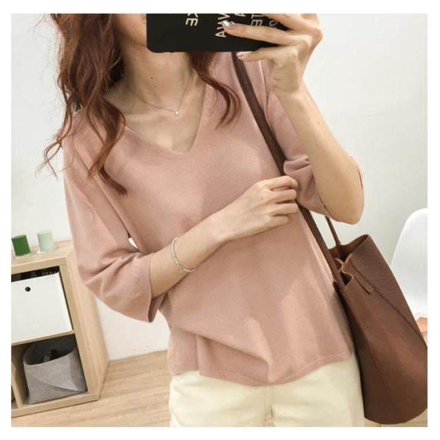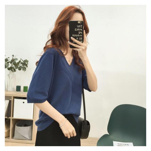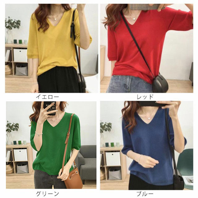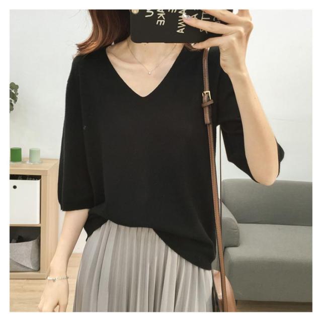 送料無料 ニットトップス レディース ニット Tシャツ ニット Vネック 半袖Tシャツ Tシャツ ニット トップス 半袖 サマーニット シンプル プルオーバー ゆったり 無地 春夏