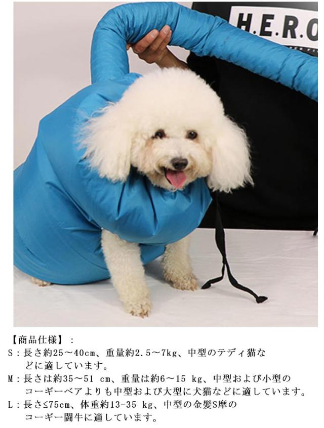 | サイズについての説明 | S:身長25-40cm(体重5-15kgの犬に適用です。) M:身長35-51cm(体重12-30kgの犬に適用です。) L:身長75cm以下(体重26-70kgの犬に適用です。) |