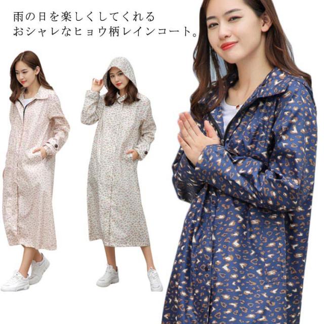 送料無料 レインコート 自転車 レインウェア レディース おしゃれ レインウェア モッズコート ZIP レディース レインウエア 雨 ヒョウ柄 撥水 通気 梅雨 収納 カッパ 合羽 雨具 スプリング コート 春夏