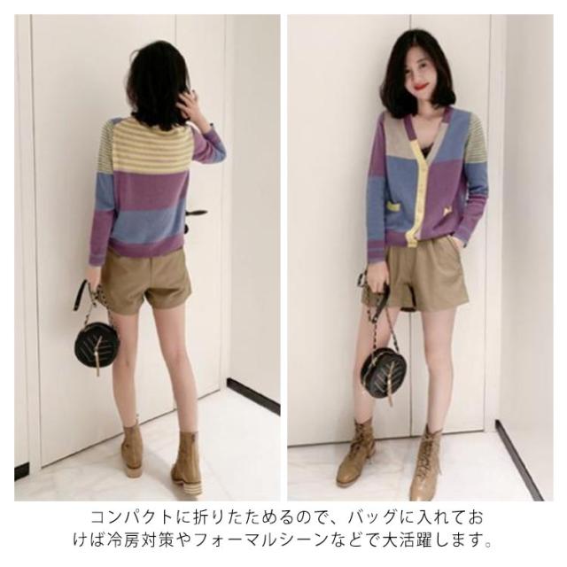 | サラッと爽やかに羽織れるニットカーディガン。 大きく開いたVネックdesignが鎖骨ラインをきれいに魅せて、すっきりとした顔らしさに カラフルのマルチカラー配色がさりげないおしゃれさを演出してくれます。 コーデに取り入れやすくバランスがとりやすいのも特徴。 ショート丈なので、どんなボトムスとも相性が良く脚長効果も抜群。 コンパクトに折りたためるので、バッグに入れておけば冷房対策やフォーマルシーンなどで大活躍します。 | |