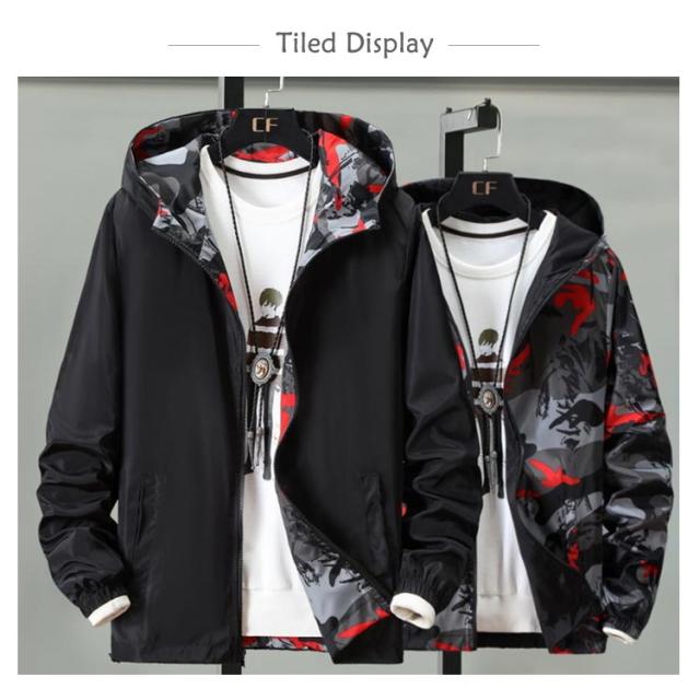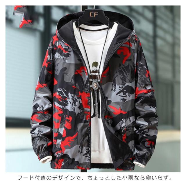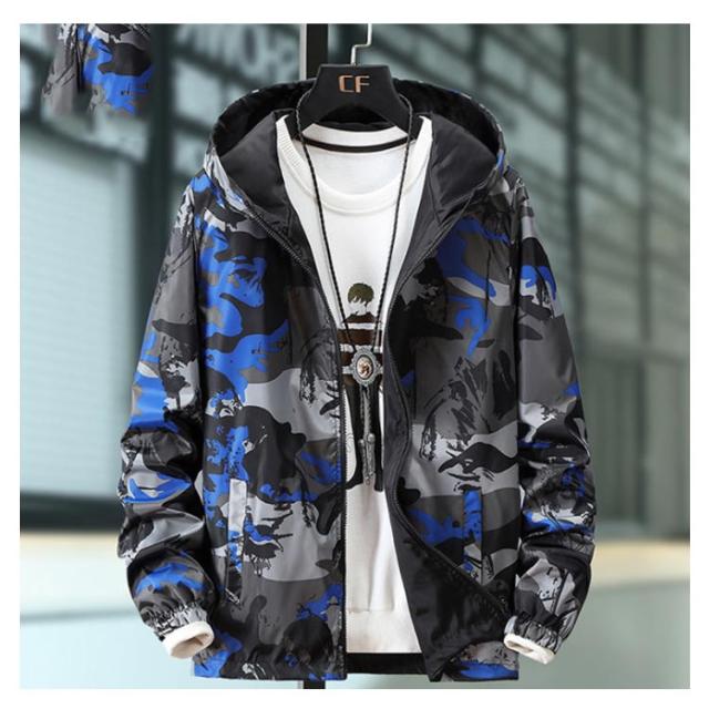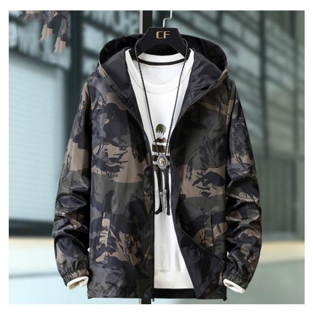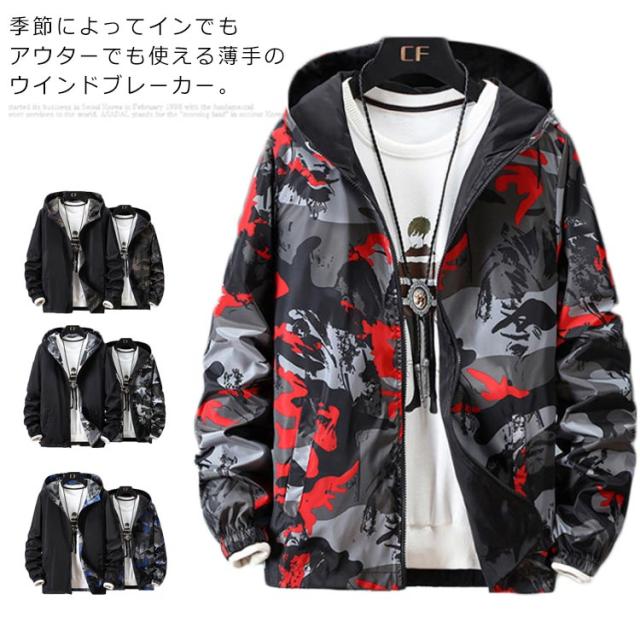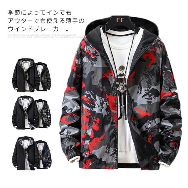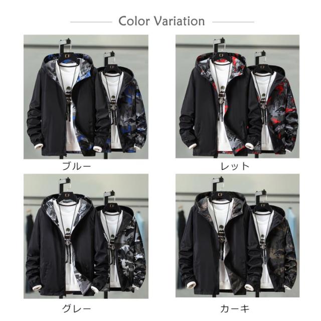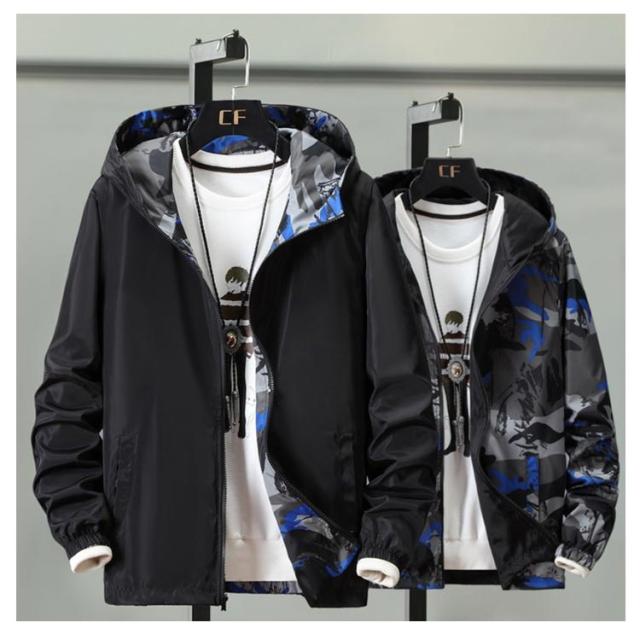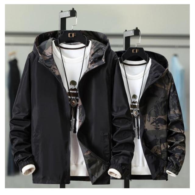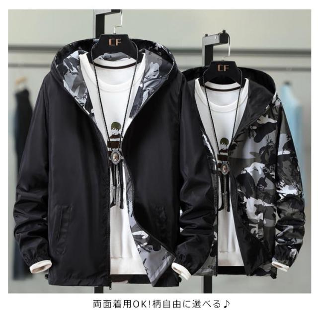 ジャケット メンズ ウインドブレーカー ジャケット 迷彩ジャケット 迷彩 無地 長袖 シンプル フード付き 防風 アウター 大きいサイズ 両面着用 春 秋