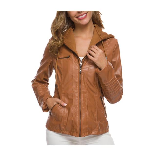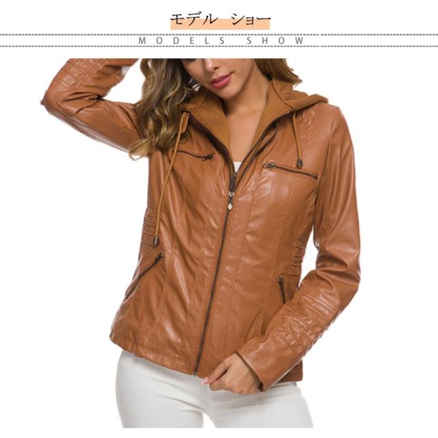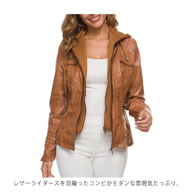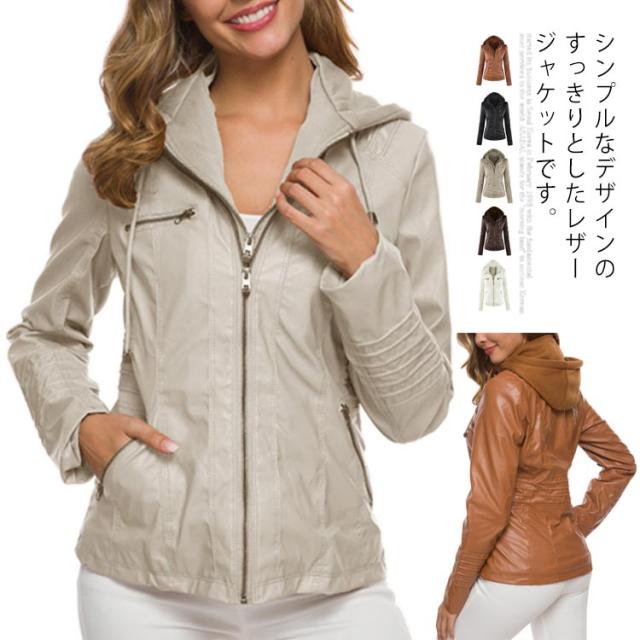 ライダースジャケット ショート丈 ジャケット レディース レザージャケット フード付き アウター ゆったり お洒落 大きいサイズ 着痩せ 春服 カジュアル