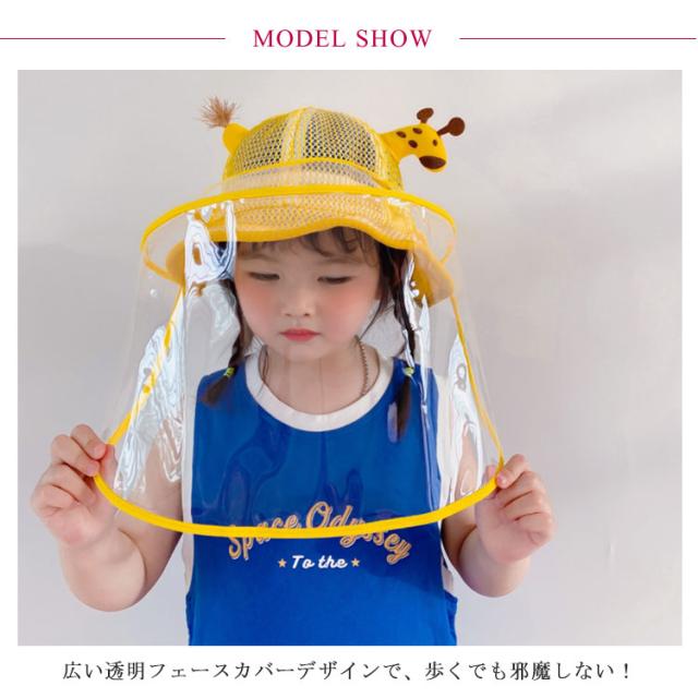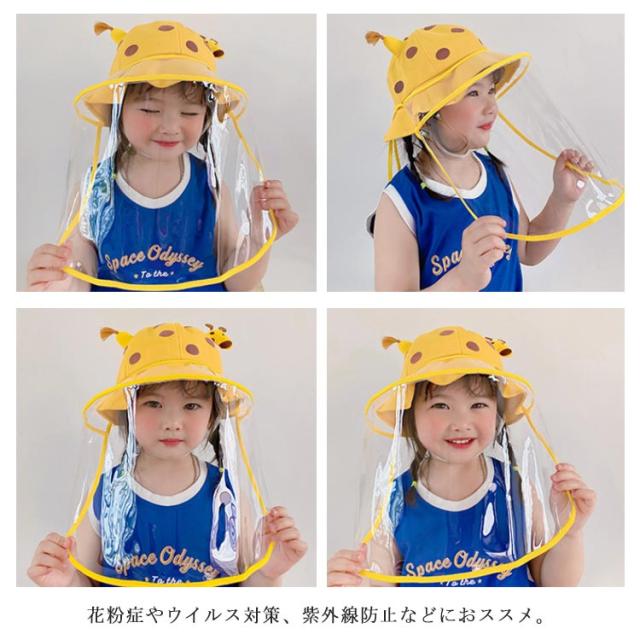子供 帽子 ハット フェイスカバー付 透明 マスク 防塵 かわいい キッズ ハット 花粉症対策 紫外線 折りたたみ 男女兼用
