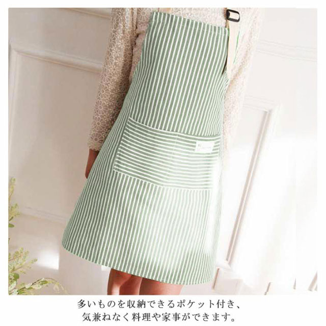 エプロン かわいい ストライプ エプロン 首掛け式 母の日 プレゼント 保育士 おしゃれ しっかり 着脱簡単