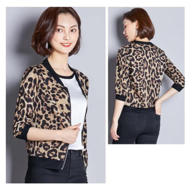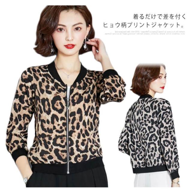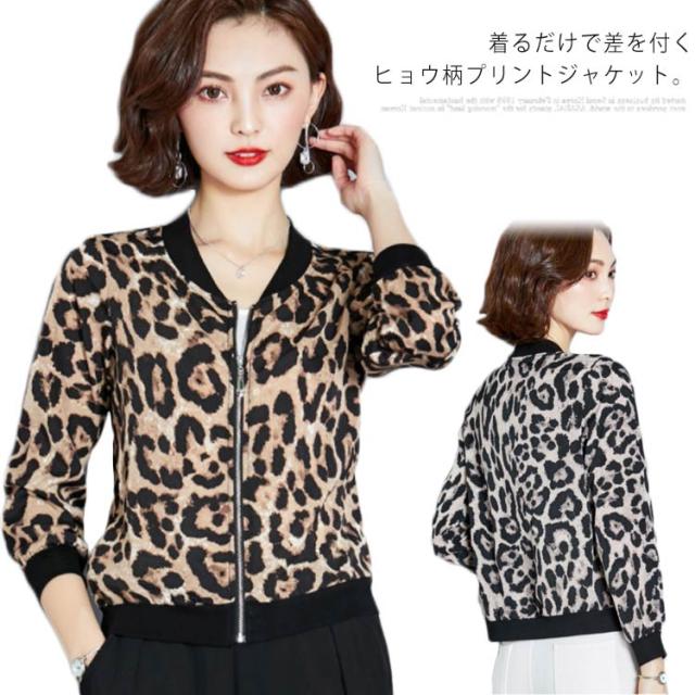 送料無料 長袖/5分袖 スタジャン スタジアムジャケット ヒョウ柄ジャケット レオパード ジャケット ショート丈 アウター コート 豹柄 ひょう柄 おしゃれ レディース