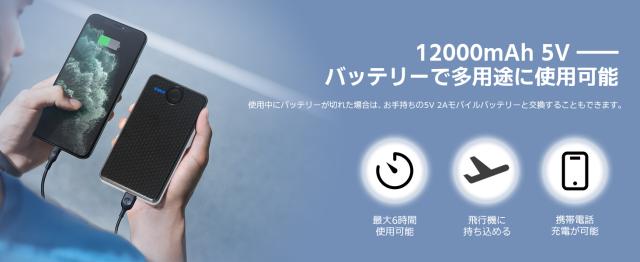 12000mAhのバッテリー付き