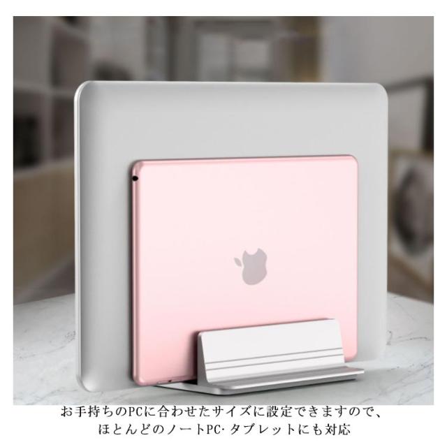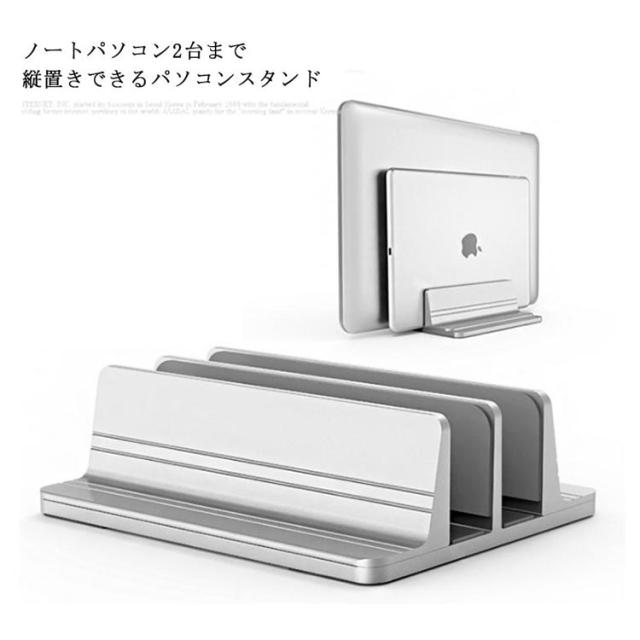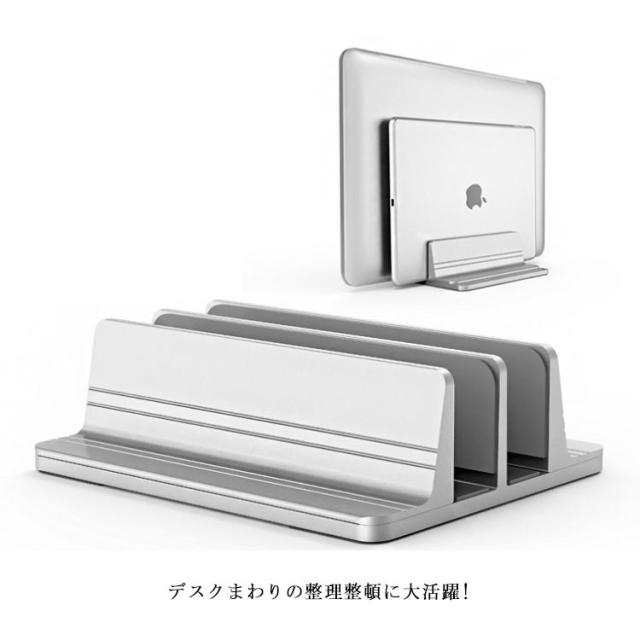 ノートパソコン スタンド ノートPC PCスタンド ブックスタンド 縦置き 収納 幅調節可能 縦 片付け 2台置き アルミ MacBook タブレット スタンド