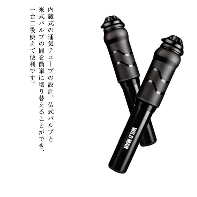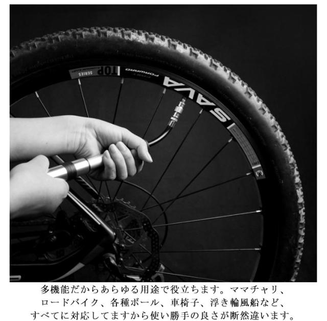 自転車 空気入れ ミニエアポンプ 米式 仏式 バルブ対応 2種バルブコネクタ付 携帯ポンプ 軽量 小型 収納便利 アタッチメント付属 マウンテンバイク ロードバイク適用