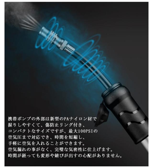 | 内蔵式の通気チューブの設計、仏式バルブと米式バルブの間を簡単に切り替えることができ、一台二役使えて便利です。自転車に装着ブラケットが付属し、万が一の場合(自転車の故障、防災、アウトドアなど)でも簡単に使えます。 サイズはわずか15.6x3cm(iphone 6 Plusの長さと同じ)、重さは88gだけです。持ち運びに便利な手のひらサイズのフットポンプです。特に中・長距離の自転車に乗る時、タイヤ圧力不足の状況がスムーズに解決できます。 携帯ポンプの外部は新型のPAナイロン材で握りしやすくて、傷防止リング付き、コンパクトなサイズですが、最大100PSIの空気圧まで対応でき、時間を短縮し、手軽に空気を入れることができます。空気漏れの事がなく、完璧な気密性に仕上げます。時間が経っても変形や錆びが出すの心配がありません。 多機能だからあらゆる用途で役立ちます。ママチャリ、ロードバイク、各種ボール、車椅子、浮き輪風船など、すべてに対応してますから使い勝手の良さが断然違います。 | |