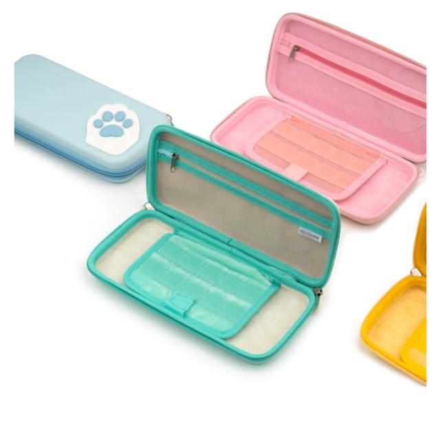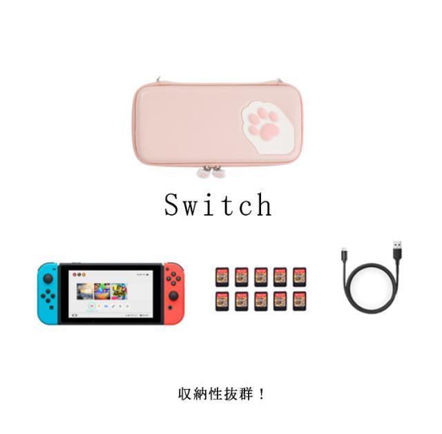 Nintendo Switch 対応 ケース ネコ柄 肉球 収納ケース 収納バッグ ハードケース ストラップ付属 ガラスフィルム付属 switch キャリングケース スイッチ ケース ニンテンドー スイッチ カバー 保護ケース 全面保護型 ゲームカード 収納 耐衝撃 正規品 送料無料
