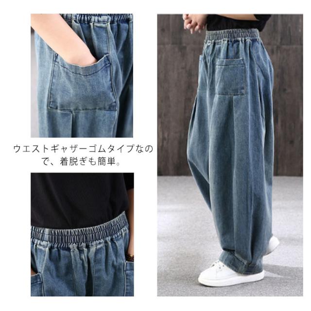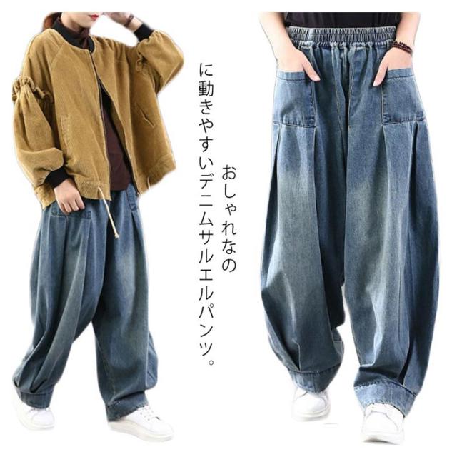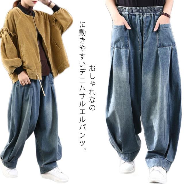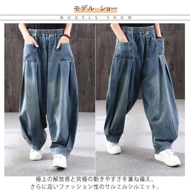 オーバーサイズ デニムパンツ サルエルパンツ デニム ロングパンツ ジーンズ 色落ち加工 サルエル ゆるパンツ ウォッシュ ヴィンテージ カジュアル 体型カバー 春 秋 レディース