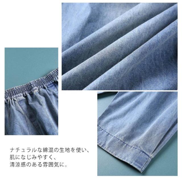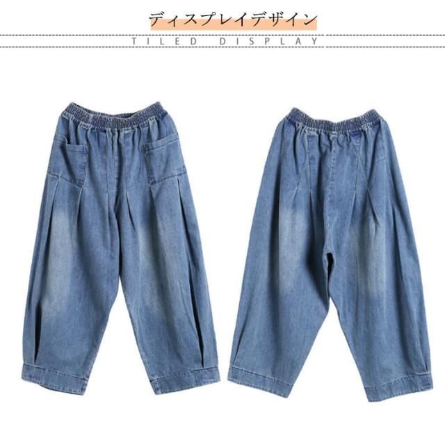| おしゃれなのに動きやすいデニムサルエルパンツ。 極上の解放感と究極の動きやすさを兼ね備え、さらに高いファッション性のサルエルシルエット。 街着、部屋着、散歩、休日のリラックスタイムなど涼しく過ごしたい方にオススメ。 股深め作りで気になる下半身の体型カバーをオシャレにしてくれる! ナチュラルな綿混の生地を使い、肌になじみやすく、清涼感のある雰囲気に。 ウエストギャザーゴムタイプなので、着脱ぎも簡単。 どんなトップスとも好相性◎春夏のカジュアルスタイルにお使い頂ける万能item。 | |