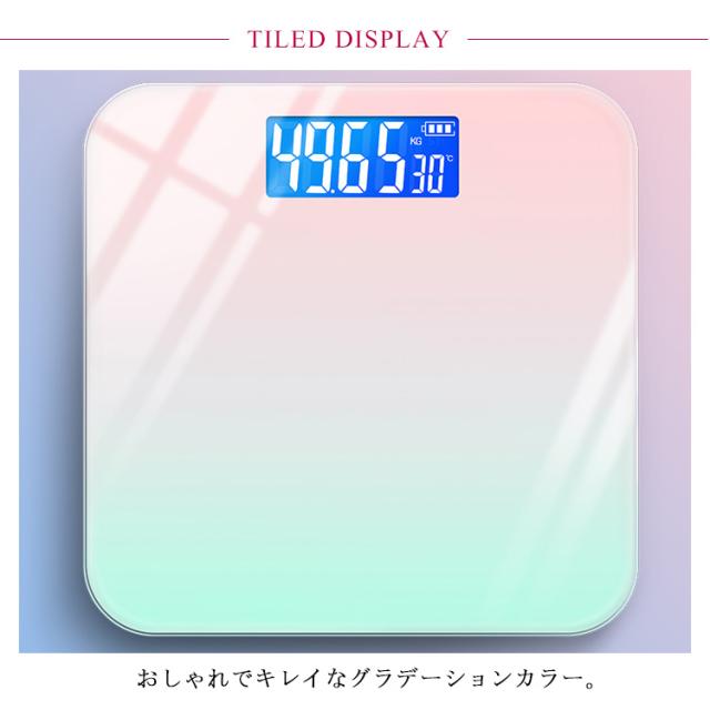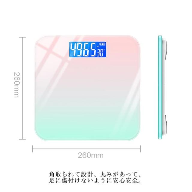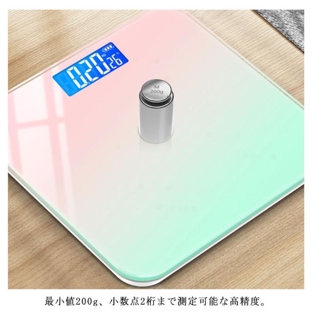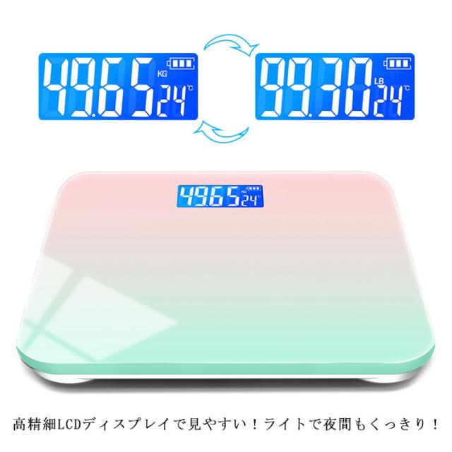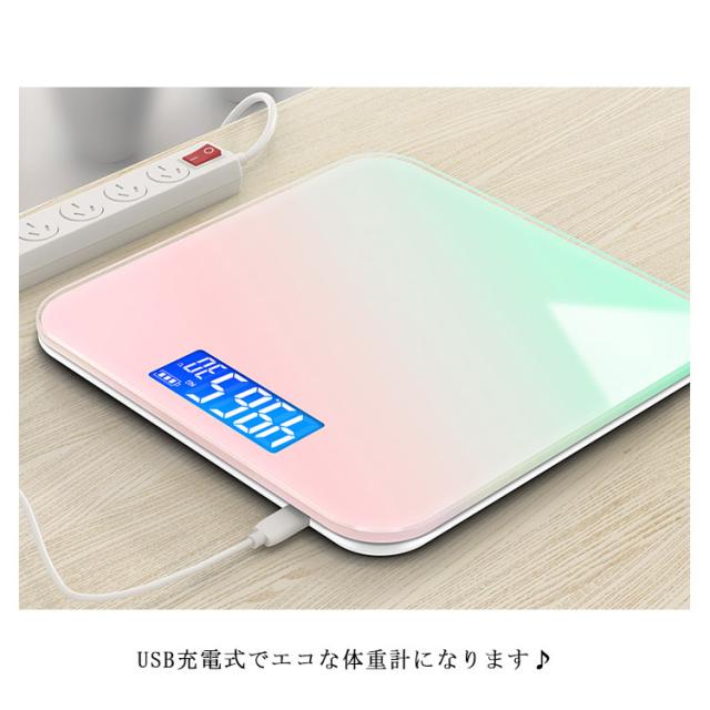 体重計 USB充電 ガラス製 LCDディスプレイ 高精度 正確 バックライト付き 180kgまで対応 オートオフ デジタル コンパクト シンプル かわいい 健康管理 電源自動 省エネ ヘルスメーター 健康 ヘルスケア ダイエット