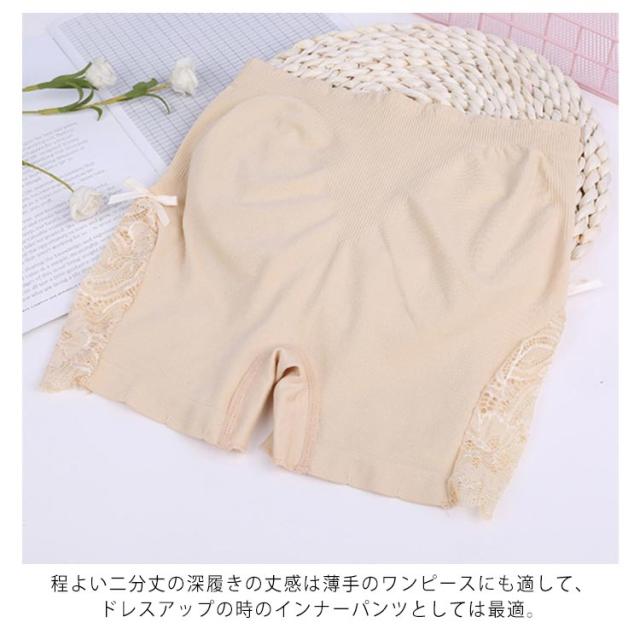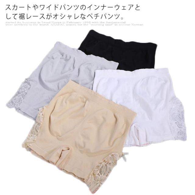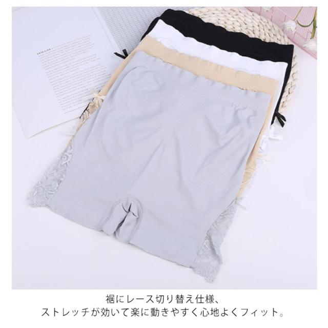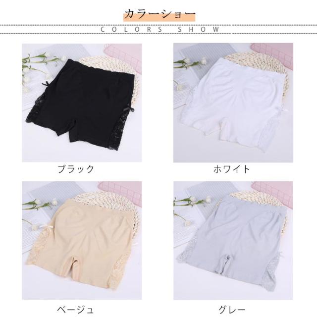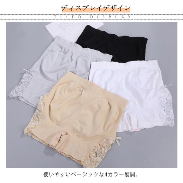 | 下着透け対策におすすめのシンプルデザインのインナーパンツ。 裾にレース切り替え仕様、ストレッチが効いて楽に動きやすく心地よくフィット。 使いやすいな4カラー展開。 | |