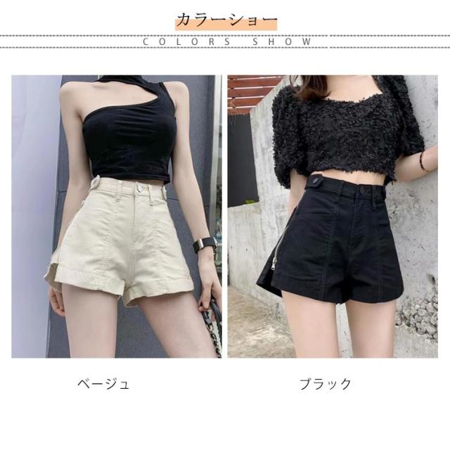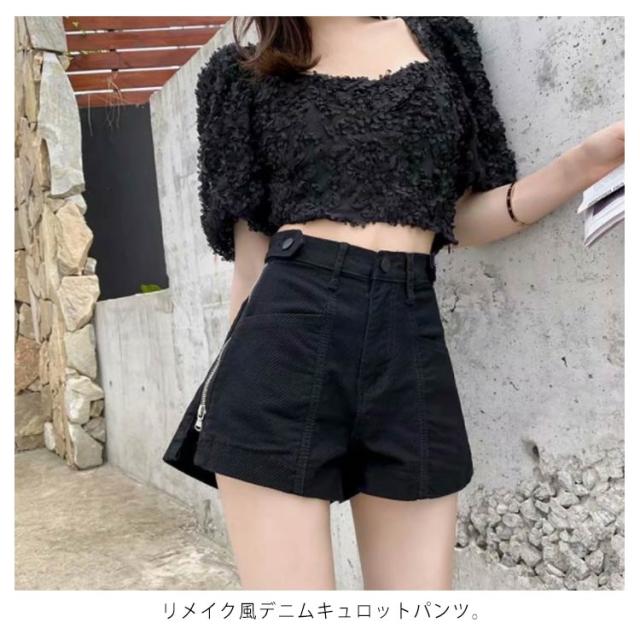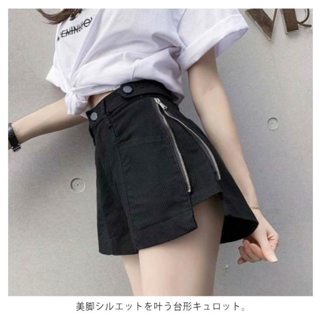 送料無料 パンツ レディース ショートパンツ ワイドパンツ ジップアップ付き キュロット デニム 無地 ショート丈 ハイウエスト Aライン キレイめ お洒落 カジュアル細見せ 着痩せ リメイク風 ボトムス 美脚 脚長 すっきり 春新作