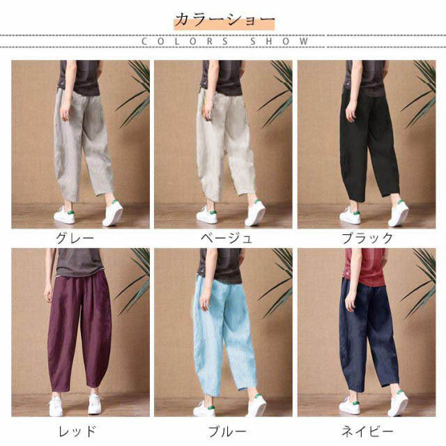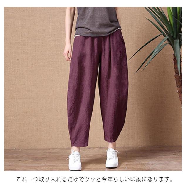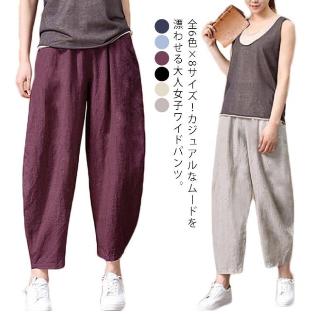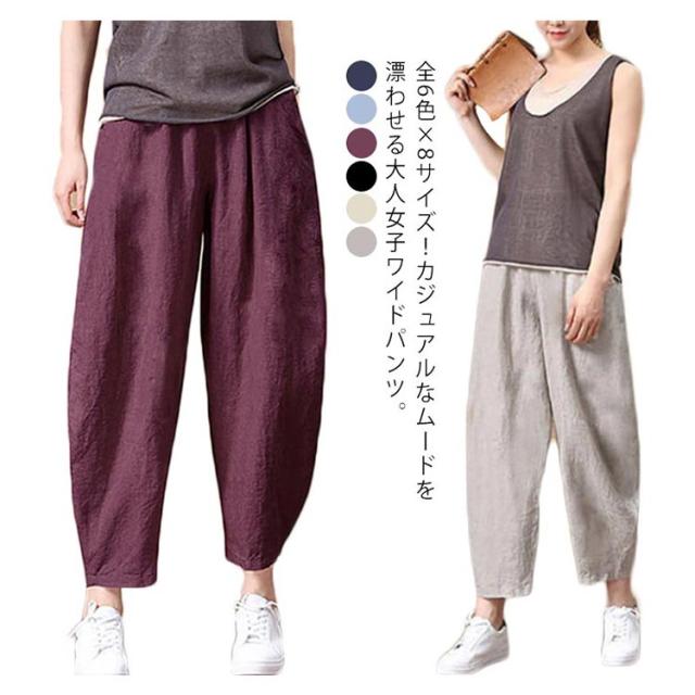 送料無料 ワイドパンツ レディース ガウチョパンツ テーパードパンツ リネン サルエルパンツ ロングパンツ リラックスパンツ イージーパンツ 九分丈パンツ 綿麻 綿麻パンツ リネンパンツ 9分丈 大きいサイズ 春 夏 秋 S〜5XL
