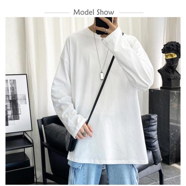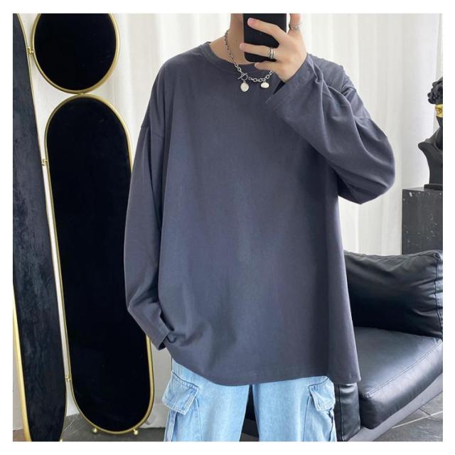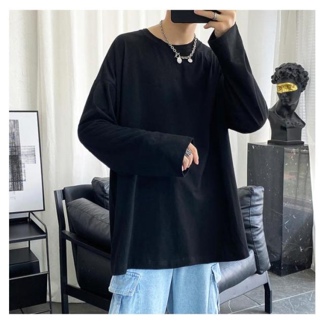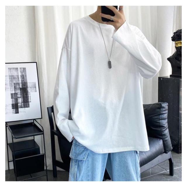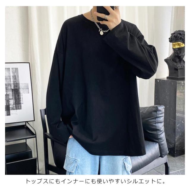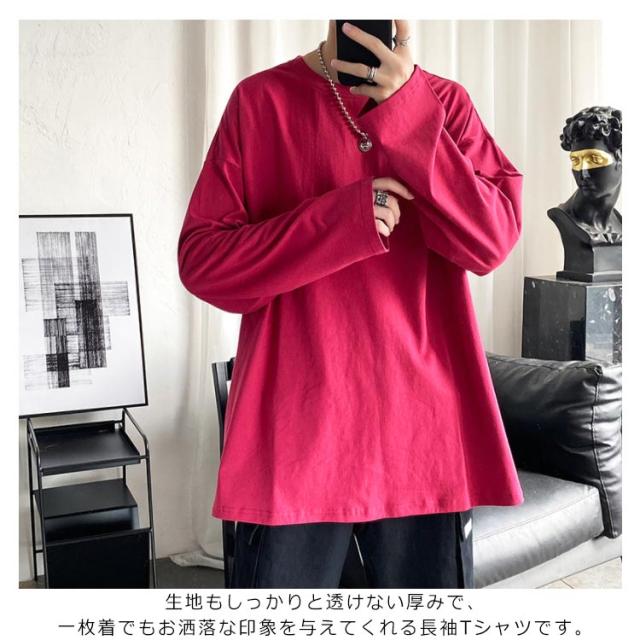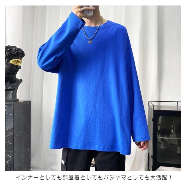 長袖Tシャツ メンズ ロゴtシャツ メンズ 無地 シンプル クルーネック Tシャツ 春秋 ゆったり 大きめ おうちコーデ おうち着 綿 男性 下着 パジャマ 男女兼用可能
