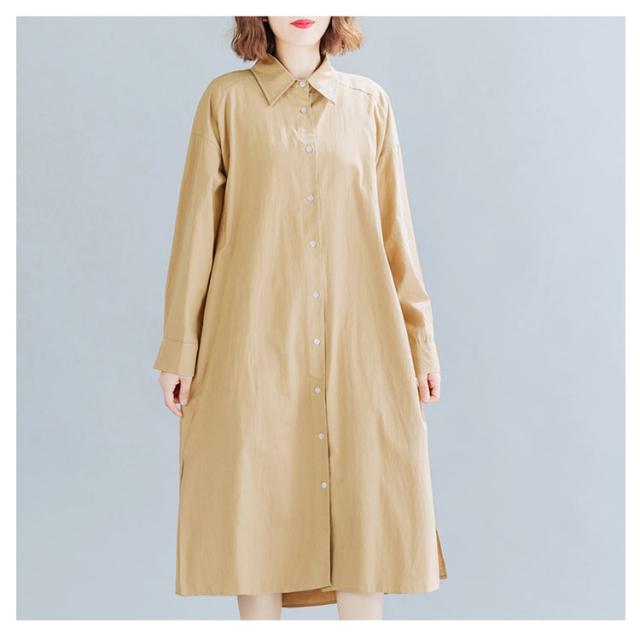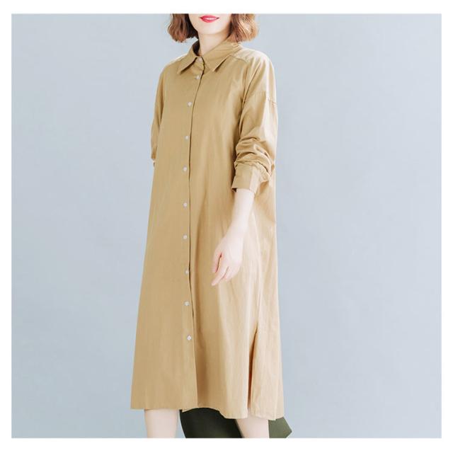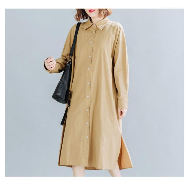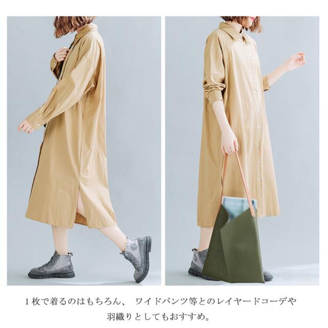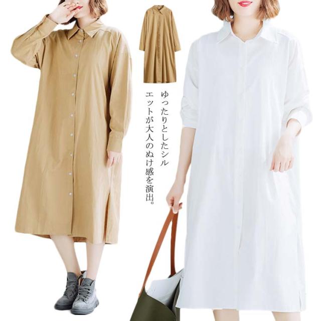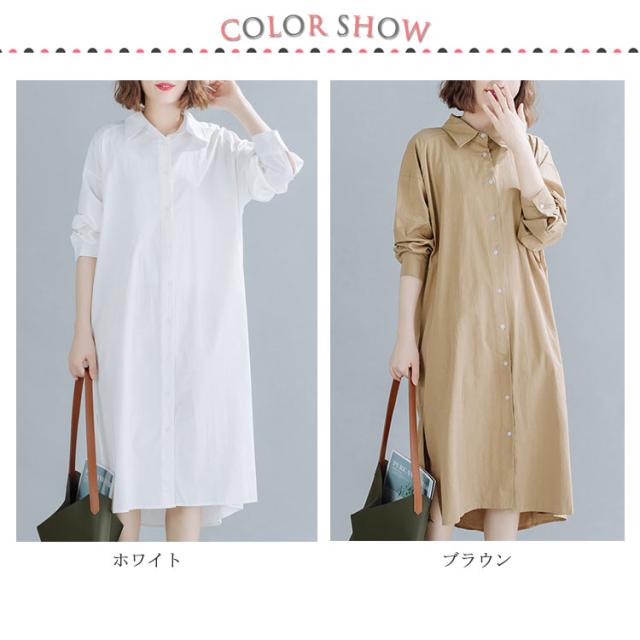 送料無料 シャツワンピ 羽織り ロング丈シャツ シャツワンピース シャツ ワンピ カジュアルワンピース 体型カバー ゆったり マタニティ 無地 ロング 大きサイズ 春 秋