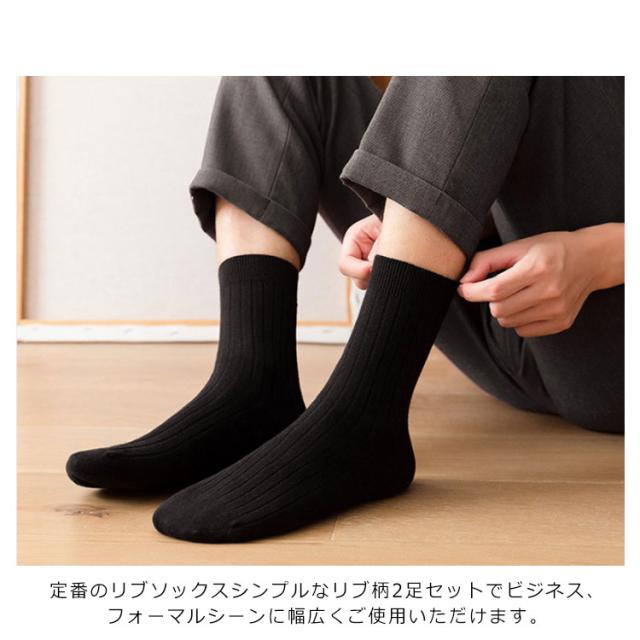 靴下 メンズ ビジネス ソックス リブ編み綿 100%ソックス 2足セット ビジネスソックス 無地 黒 紺 チャコールグレー ライトグレー フォーマルソックス