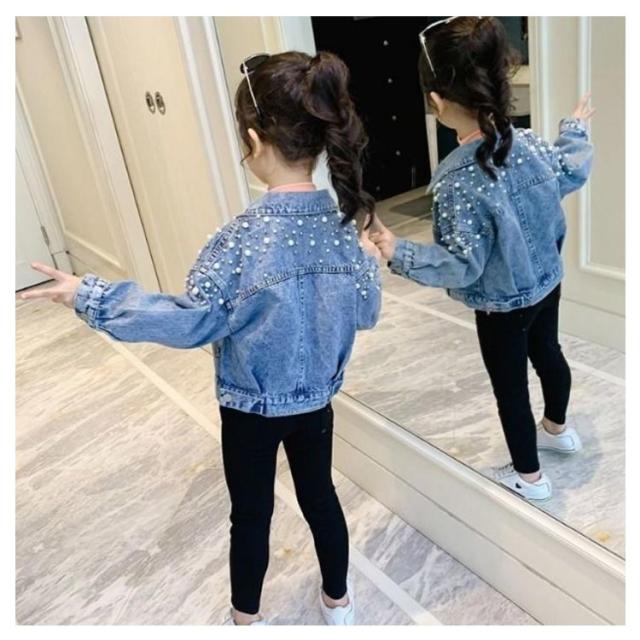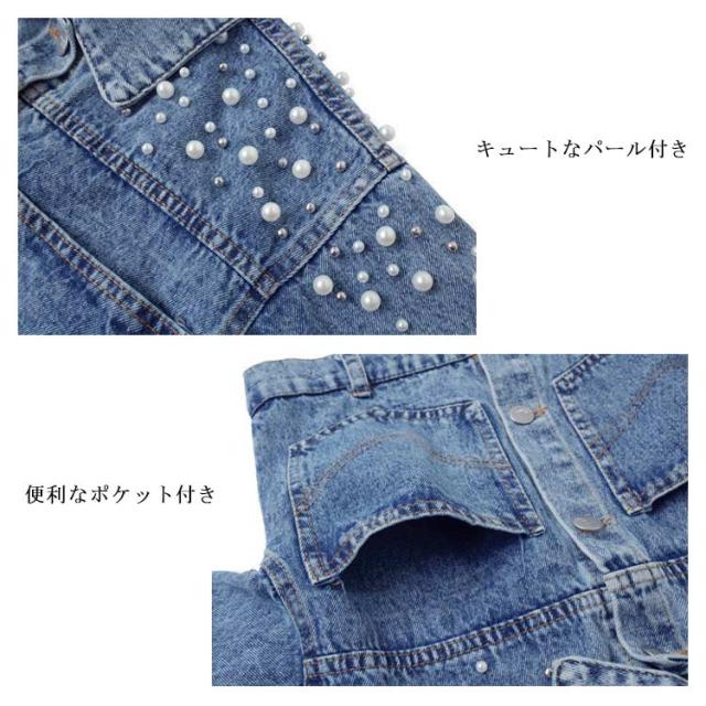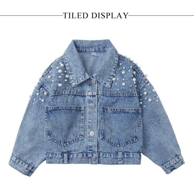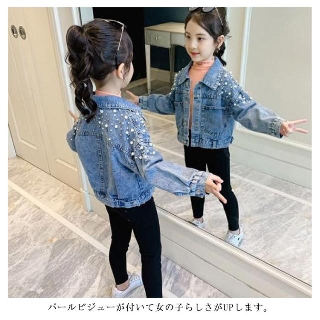 送料無料 子供服 デニムジャケット 女の子 パール付き アウター キッズ ガールズ トップス 長袖 デニム アウター 通園 かわいい 新作