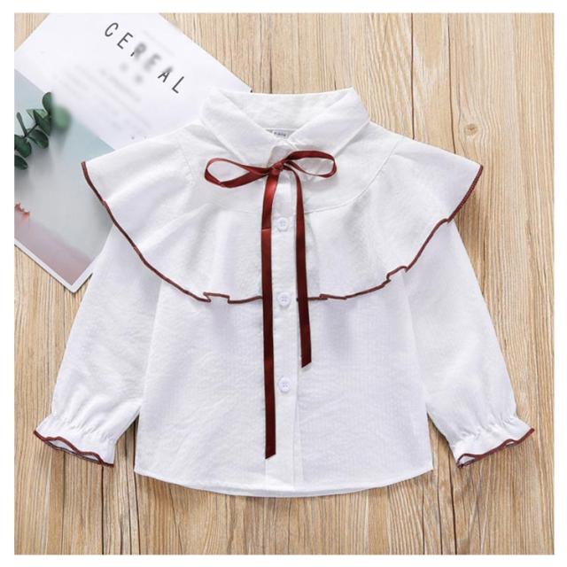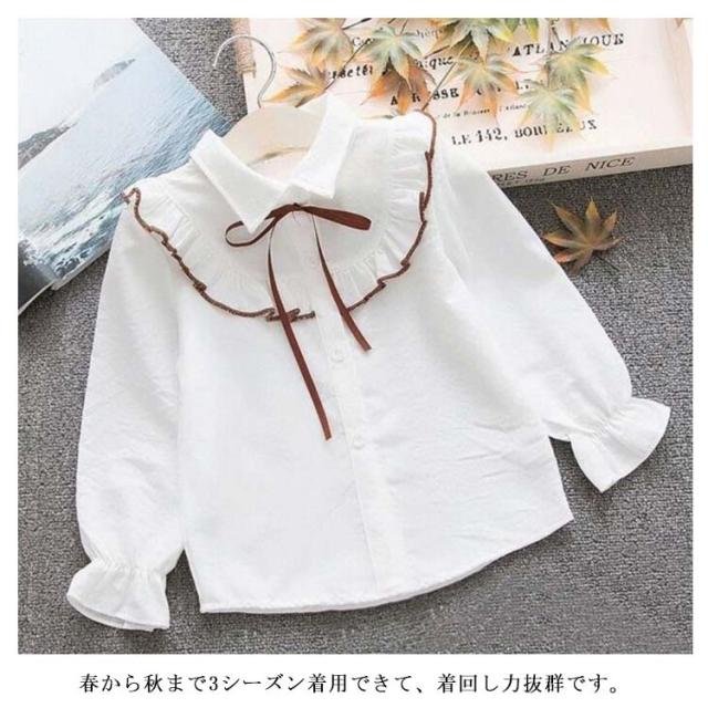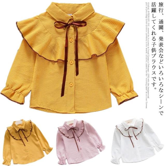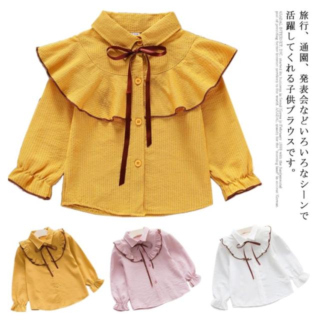 送料無料 子供服 シャツブラウス ボウタイ トップス 女の子 ガールス 長袖 女の子 長袖トップス 女児 無地 ブラウス 可愛い 通園 カジュアル リボン かわいい 新作