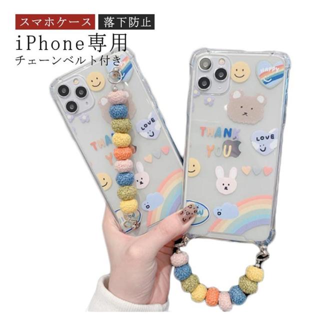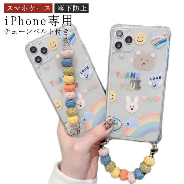 iPhone12 ケース 落下防止 クリアケース 可愛い チェーンベルト付き スマホケース ベルト付き チェーン付き スマホカバー 衝撃吸収 iPhone12 ケース iPhone ケース iPhone12mini iPhone12Pro Max ソフトケース 耐衝撃 アイフォン ケース 送料無料