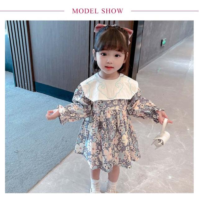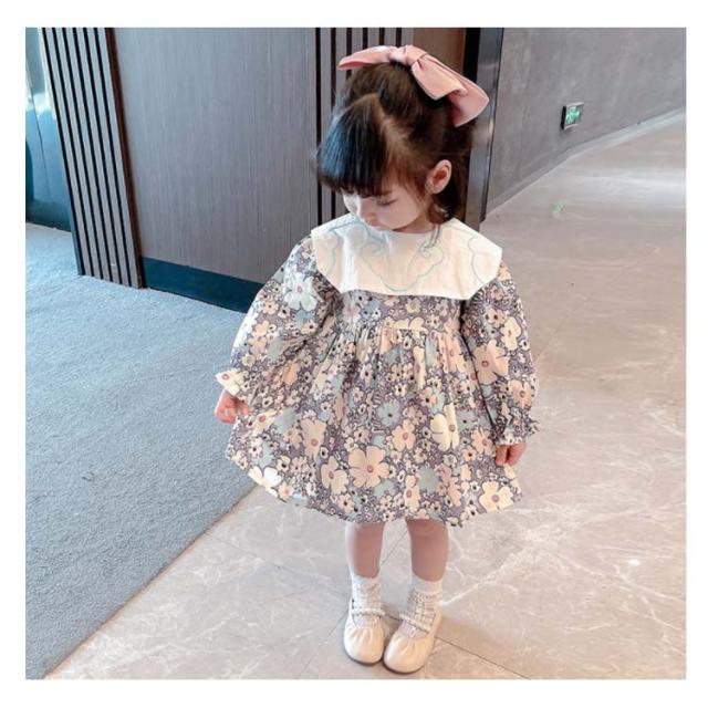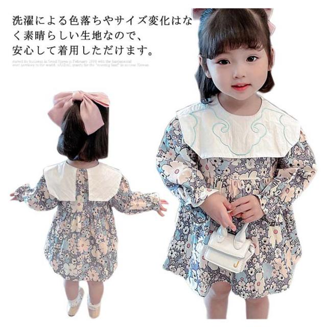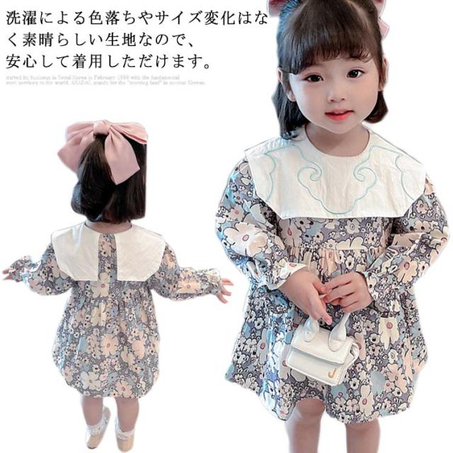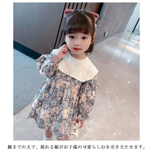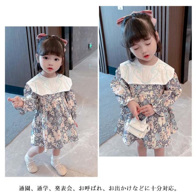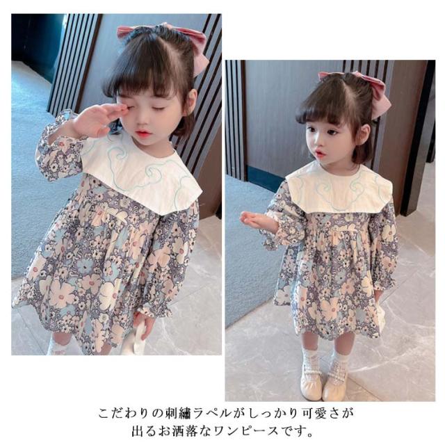 子供 ワンピース 長袖 子供服 子ども服 女の子 花柄 シンプル カジュアル 刺?襟 キッズ おしゃれ かわいい 春 夏 秋 結婚式 入学式 発表会