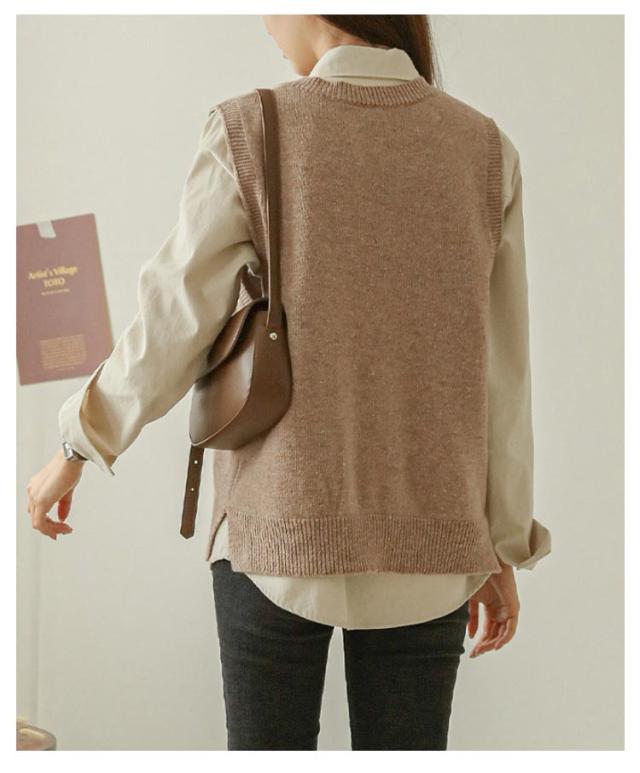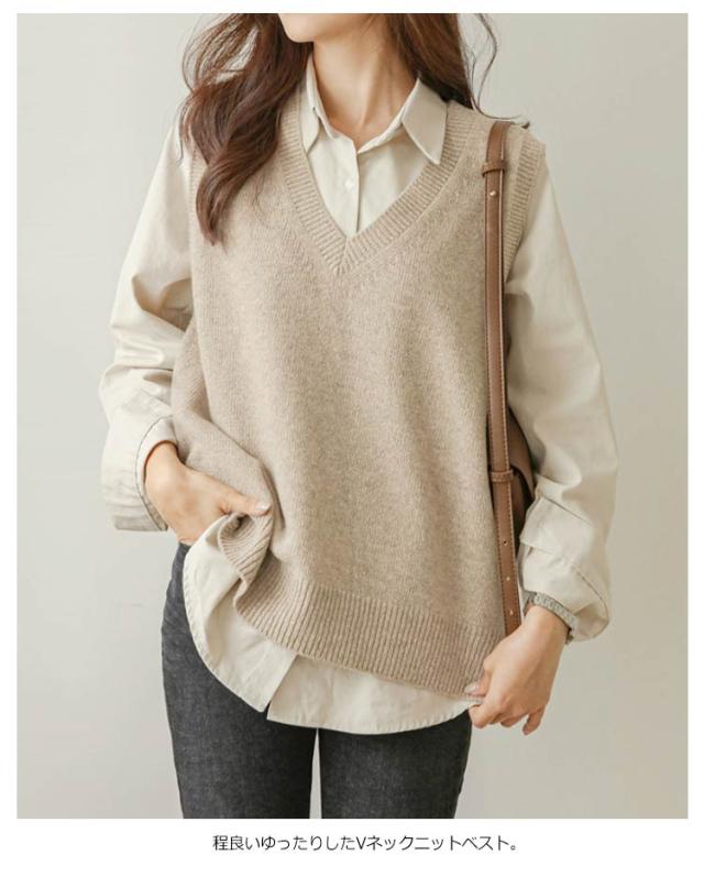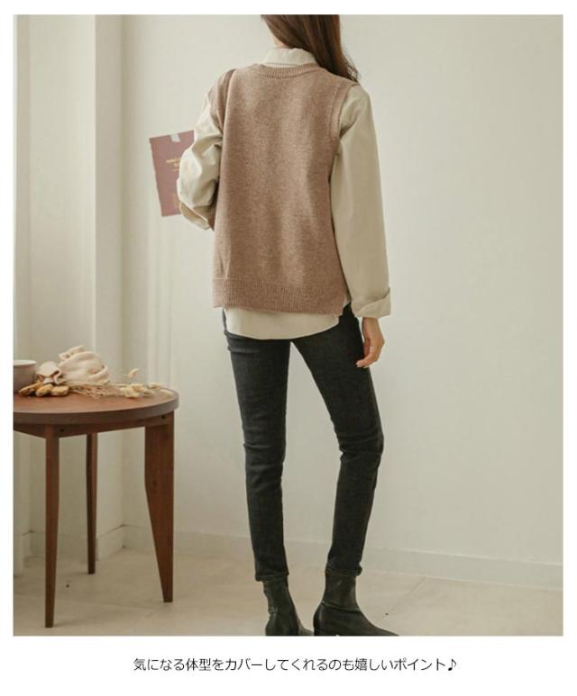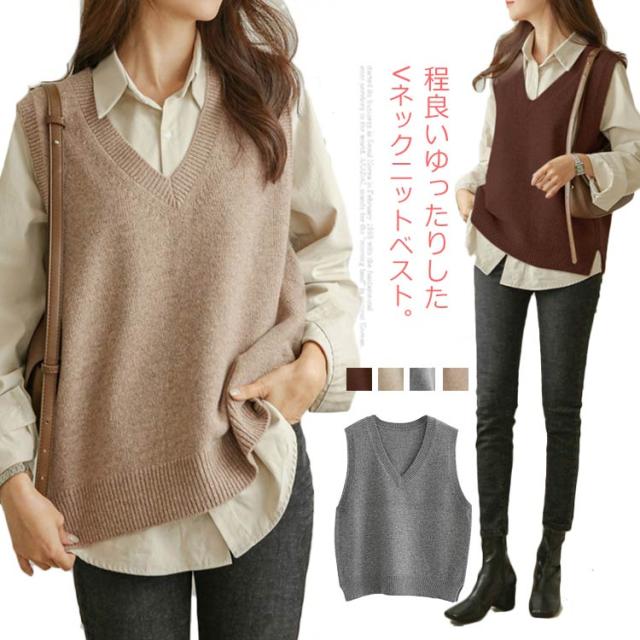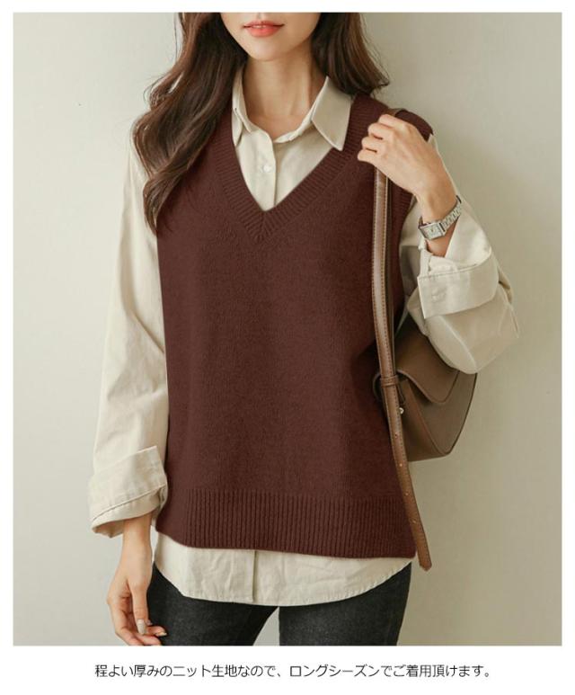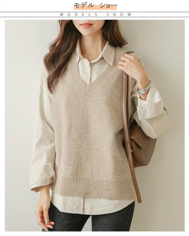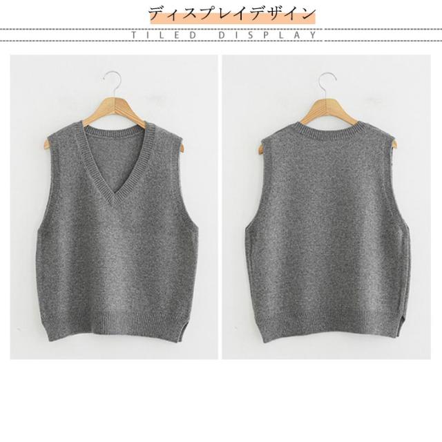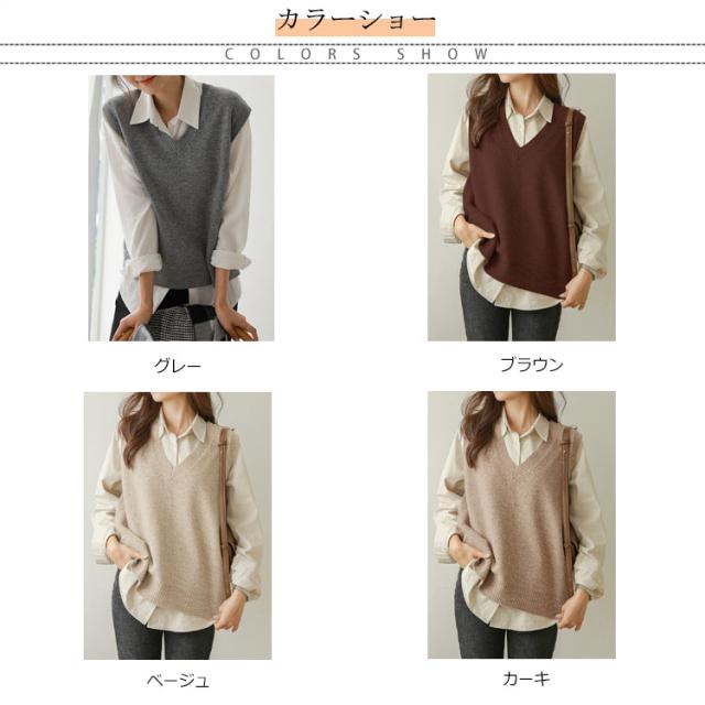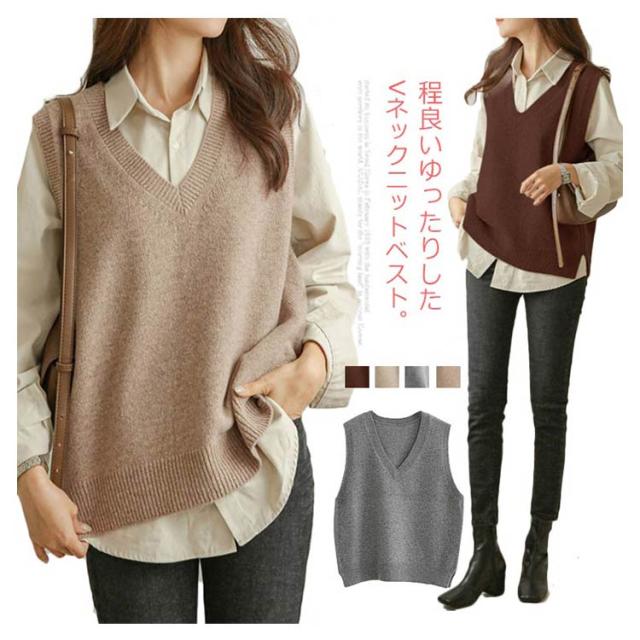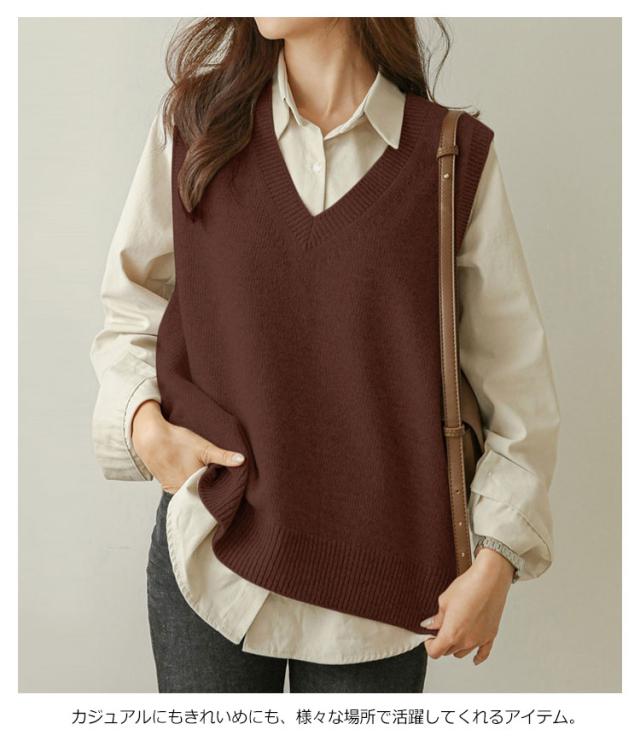 送料無料 ニットベスト レディース トップス ニット ベスト チョッキ Vネック ノースリーブ ゆったり サイドスリット レイヤード 重ね着 カジュアル 可愛い キレイめ オフィス 無地 春秋