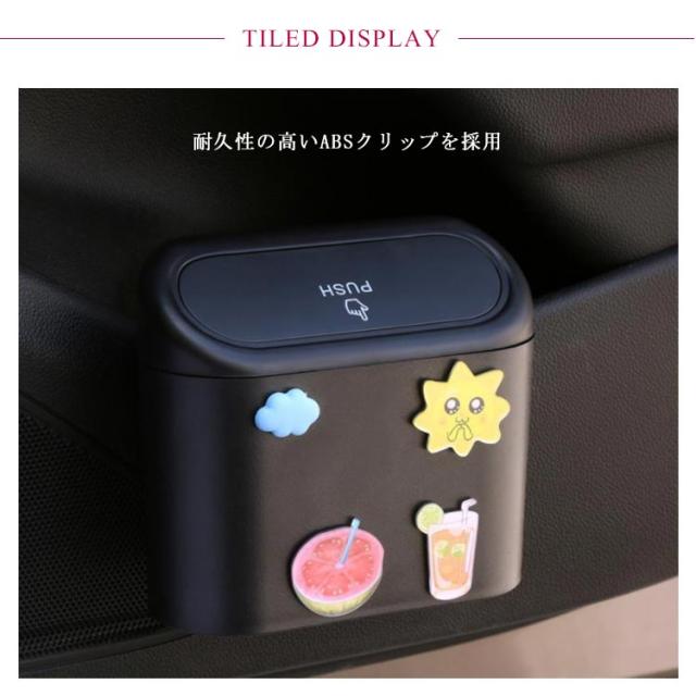 | もっと綺麗な車内環境に車用収納ボックスが大活躍! 耐久性の高いABSクリップを採用 本品背面のクリップに挟むだけ超簡単取付! ワンタッチで開閉できます 設置個所は様々/ドアポケット/シート背面 小物の収納/ゴミ箱/ドリンク収納 10mm以内の開閉が可能です 全身水洗いok! 本体の柄も可愛い | |