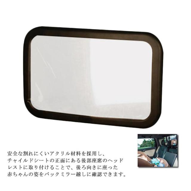 車用 ベビーミラー インサイトミラー 曲面鏡 30cmx19cm 大視野ミラー 360度回転 ガラス飛散防止 簡単固定 後部座席