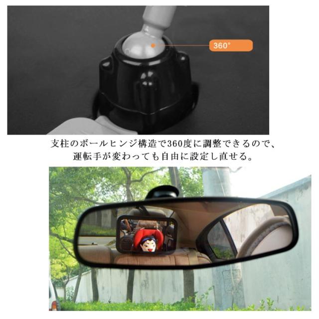 | 安全な割れにくいアクリル材料を採用し、チャイルドシートの正面にある後部座席のヘッドレストに取り付けることで、後ろ向きに座った赤ちゃんの姿をバックミラー越しに確認できます。 29cmx19cmの大きめサイズで、しっかりとお子様の様子をチェックできます。曲面デザインは、視界が広がって赤ちゃんの様子を簡単に確認できます。 支柱のボールヒンジ構造で360度に調整できるので、運転手が変わっても自由に設定し直せる。 バックル固定式で、簡単に装着でき、ヘッドレストにベルトを締めるだけでOK、より丈夫に固定できまして、運転中にひどく揺れてもしっかり固定できてマラーの落下は心配いりません! | |