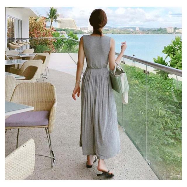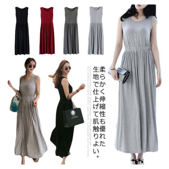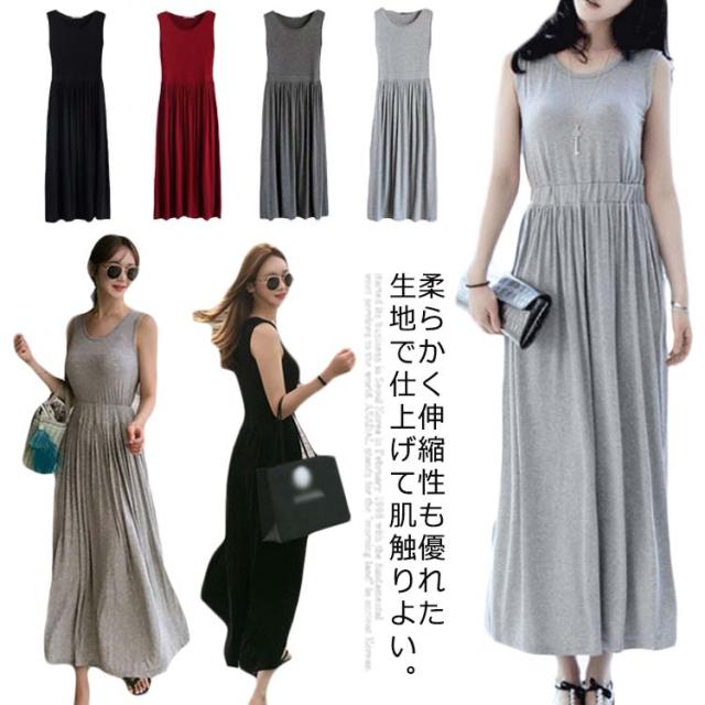 ワンピース ノースリーブ ワンピース レディース プリーツワンピース ロングワンピース 無地 きれいめ おしゃれ Aライン ゆったり カジュアル 春夏