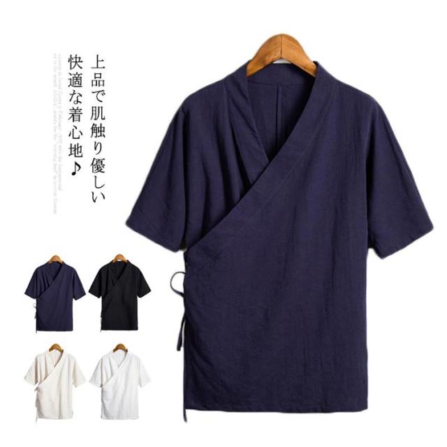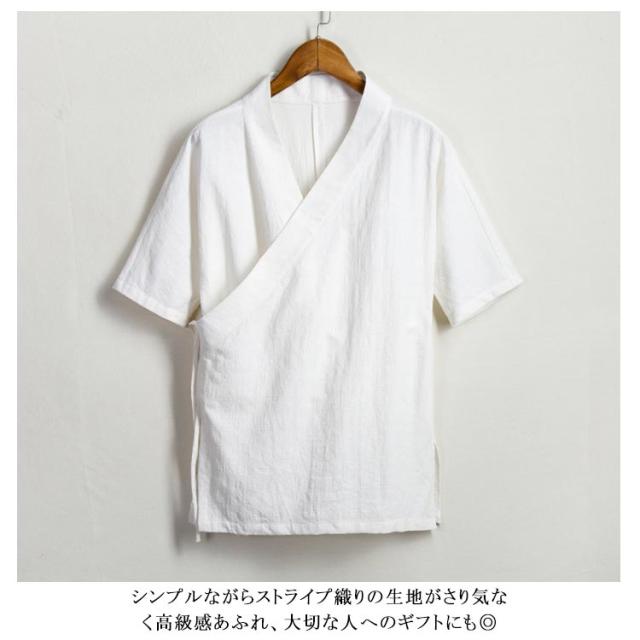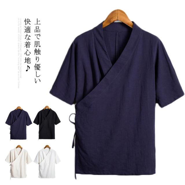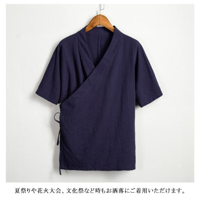 送料無料 甚平 半纏 半袖 無地 羽織 シャツ カジュアルシャツ メンズ 綿麻 麻混 和風 トップス 浴衣 敬老の日 父の日 ルームウェア 部屋着 春 夏祭り