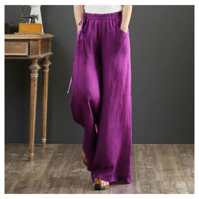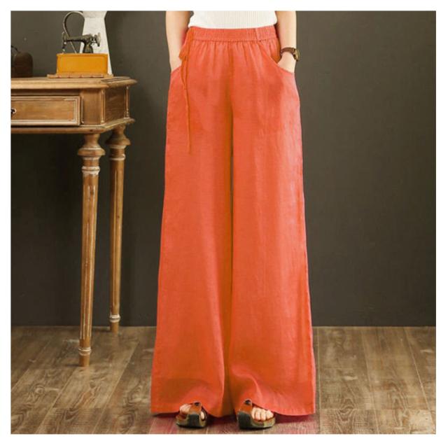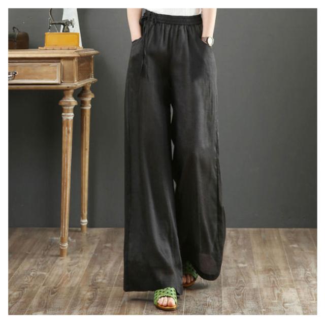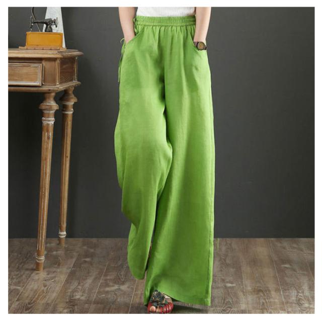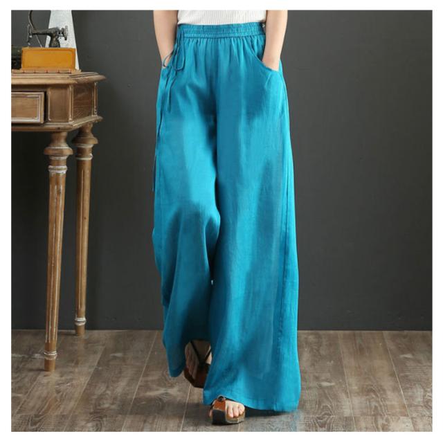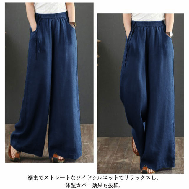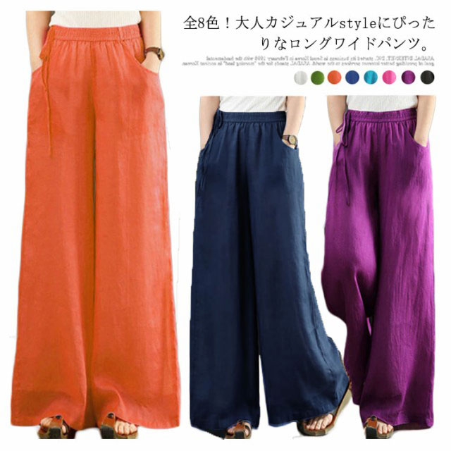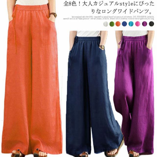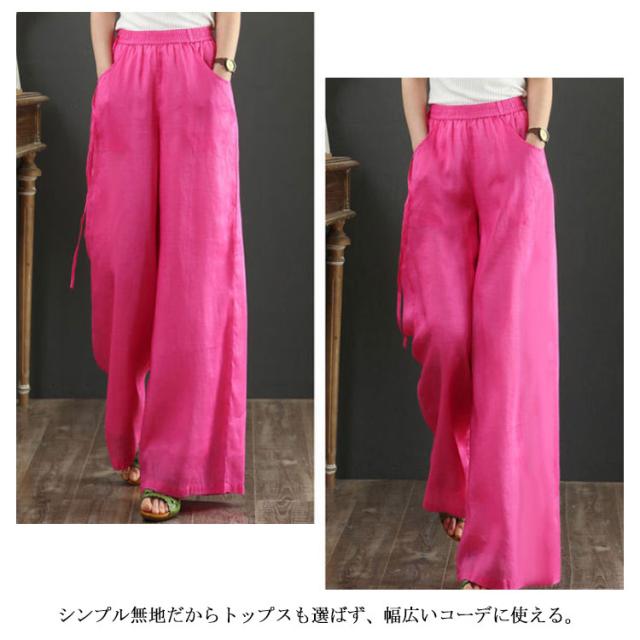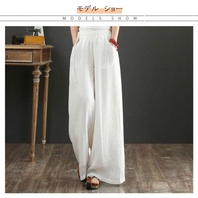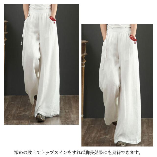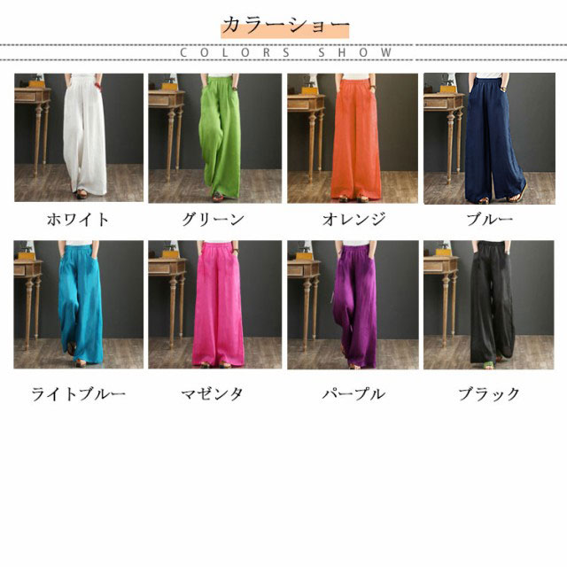 送料無料 全8色!ガウチョパンツ 10分丈 リネンパンツ 綿麻 ワイドパンツ ロング丈 カジュアルパンツ リラックスパンツ シンプル 無地 ゆったり 薄手 コットンリネン ナチュラル 春夏 体型カバー 脚長