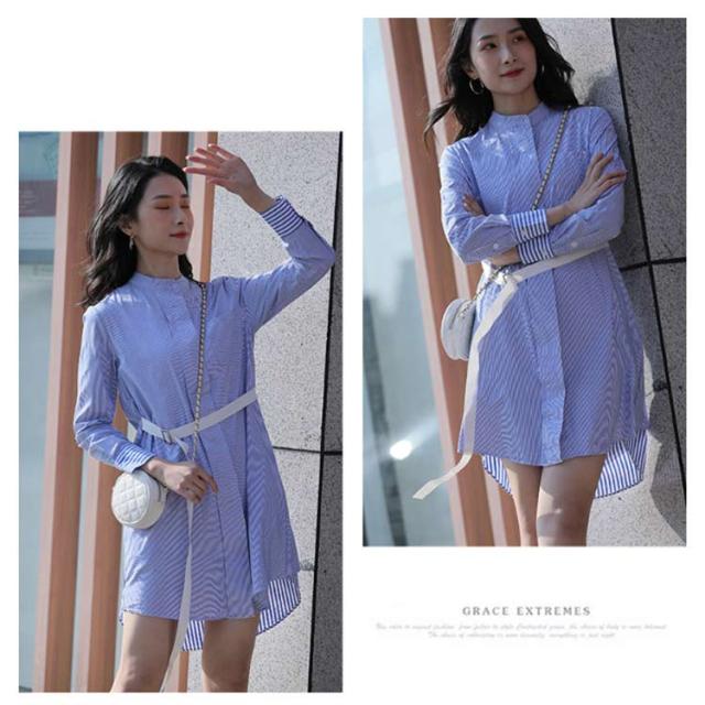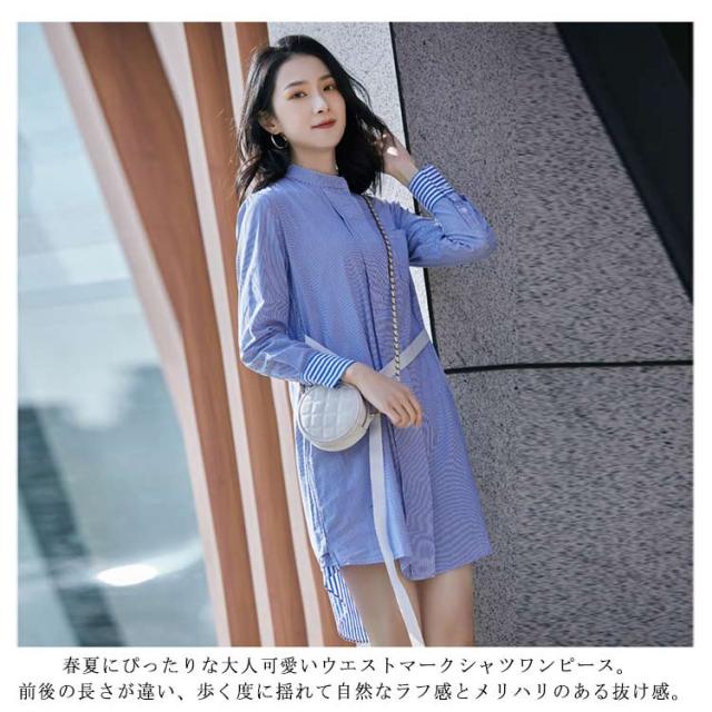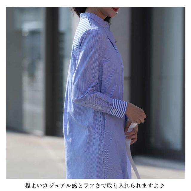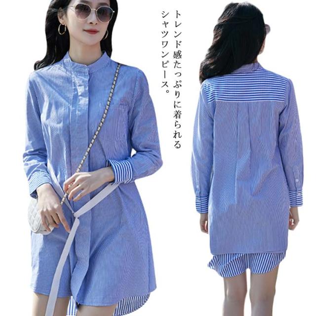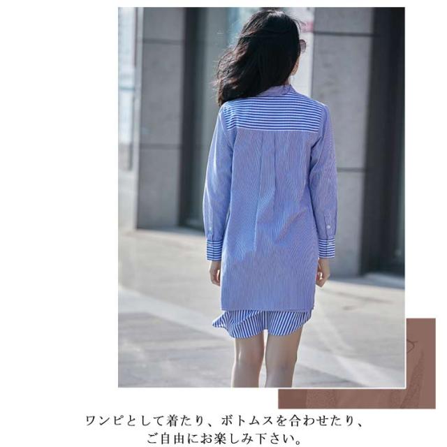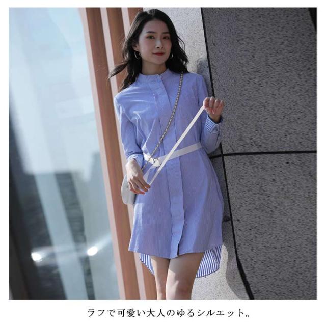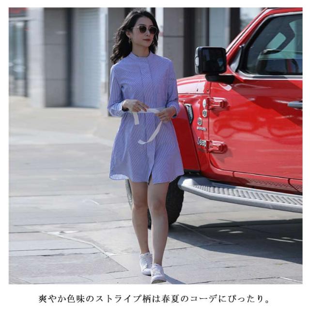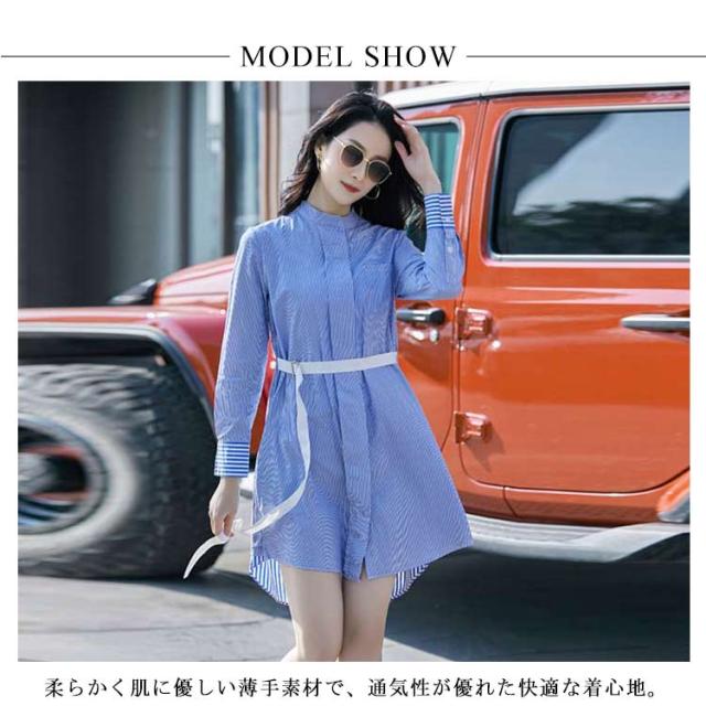 送料無料 シャツワンピース ワンピース ロングシャツ レディース チュニックワンピ ショート丈 ストライプ ブラウス トップス 長袖 ミニワンピース きれいめ 大人 可愛い 春物 夏服 上品 シンプル お洒落 カジュアル