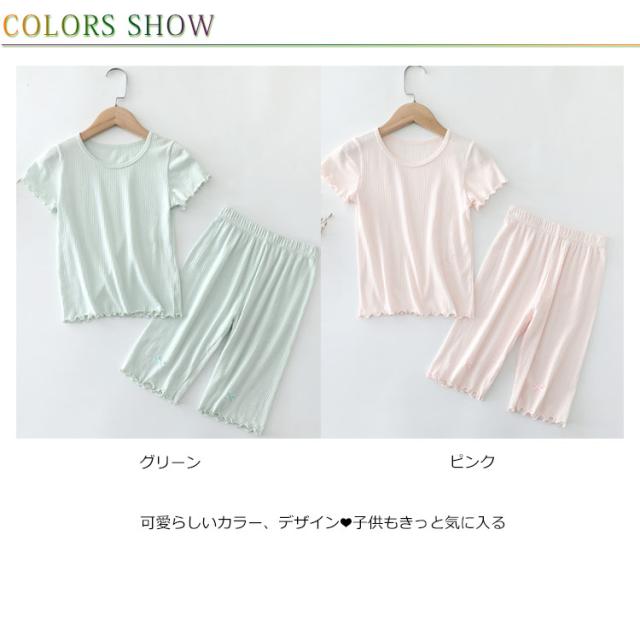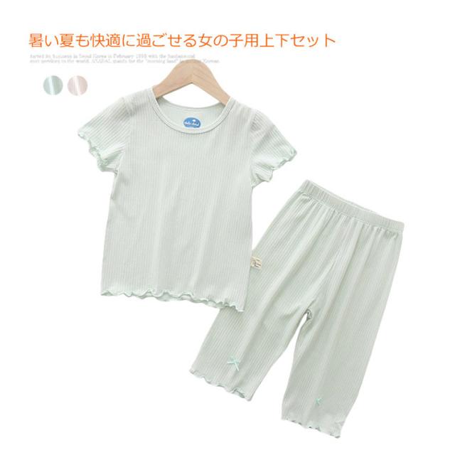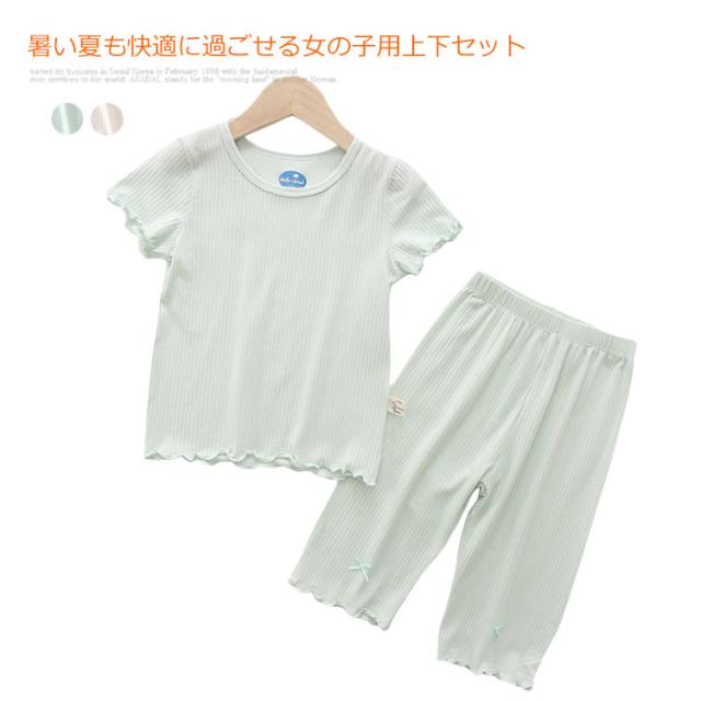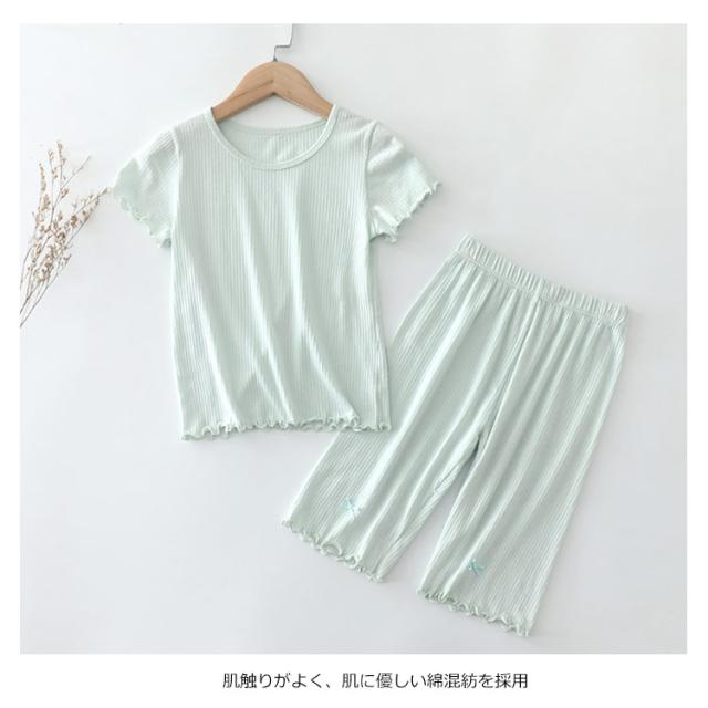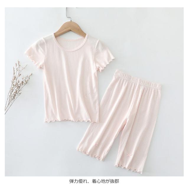 ルームウェア キッズ 送料無料 パジャマ 女の子 部屋着 子供服 寝間着 上下セット ナイトウェア トップス セットアップ 半袖 ショートパンツ リラックス リボン ジュニア フレアー 無地 薄手 韓国風 おしゃれ 春 夏 可愛い 涼しい 夏