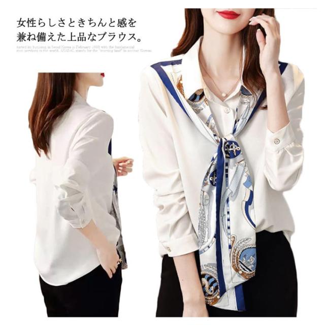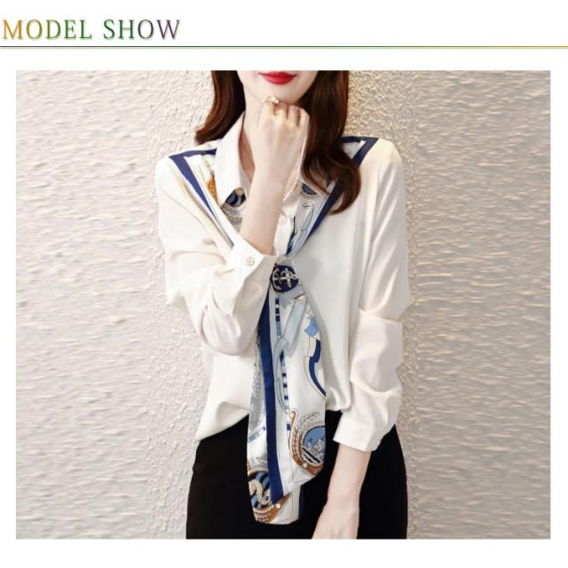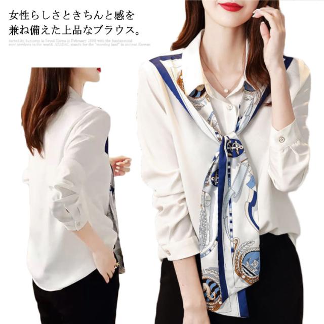 ブラウス トップス シャツ レディース 春秋 ボウタイ リボン 絵柄 長袖 ビジネス オフィス 通勤 カジュアル 制服